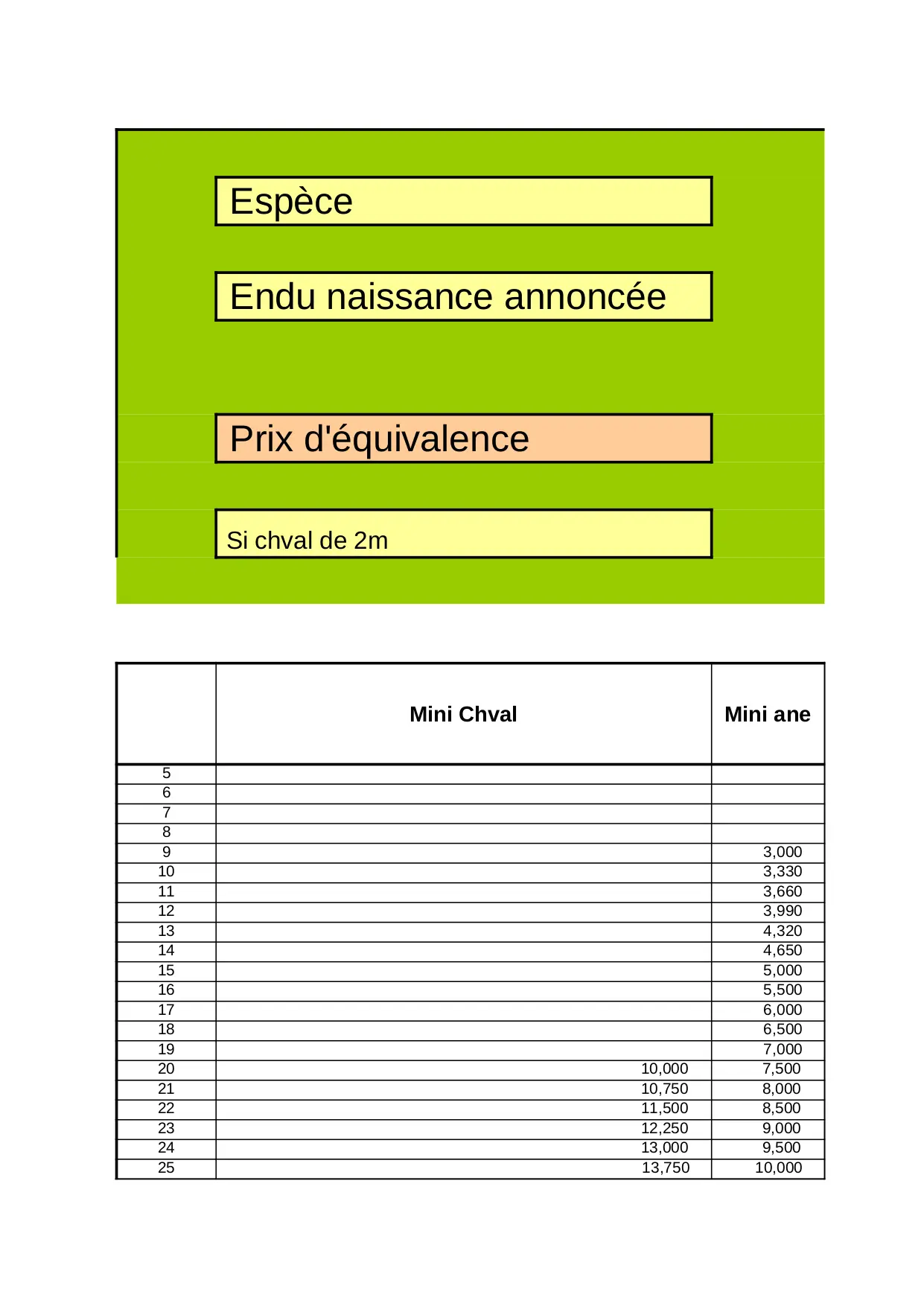 Prix indicatif (XLS)