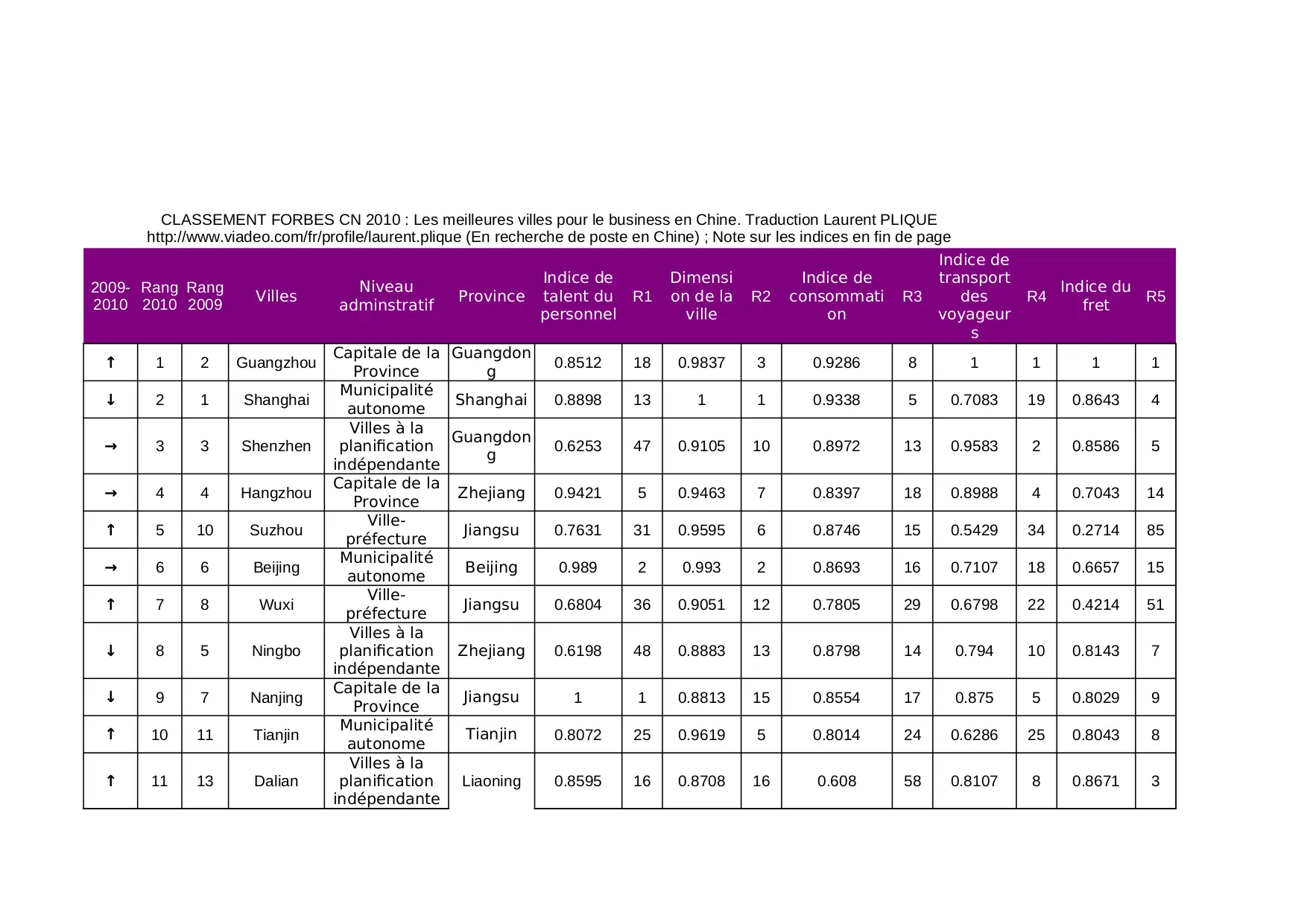 - Forbes 2010 Meilleures Villes Commercantes Chine.xls