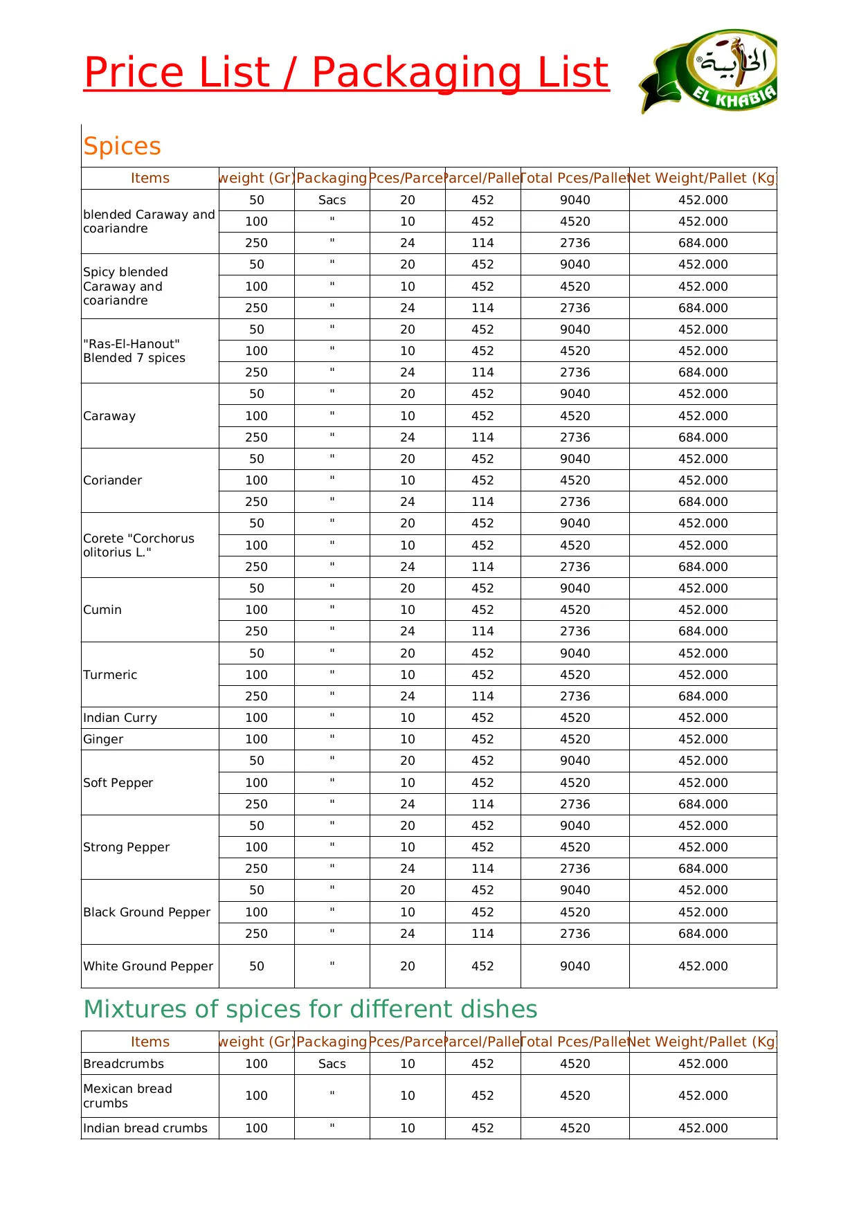 price mixture buchette packaging parcel caraway pallet pepper spice poland palette weight spices total bread