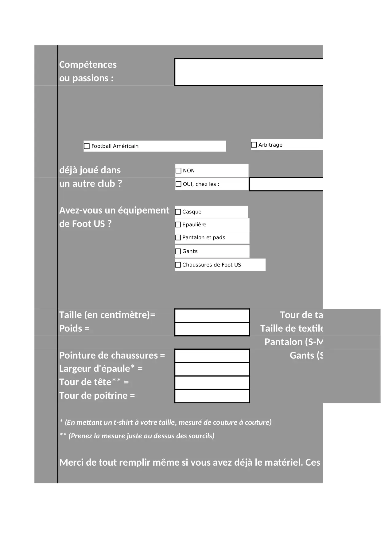 mesure couture chaussures materiel inscription domicile informations taille textile chances cases gants fonction disponibilites cocher