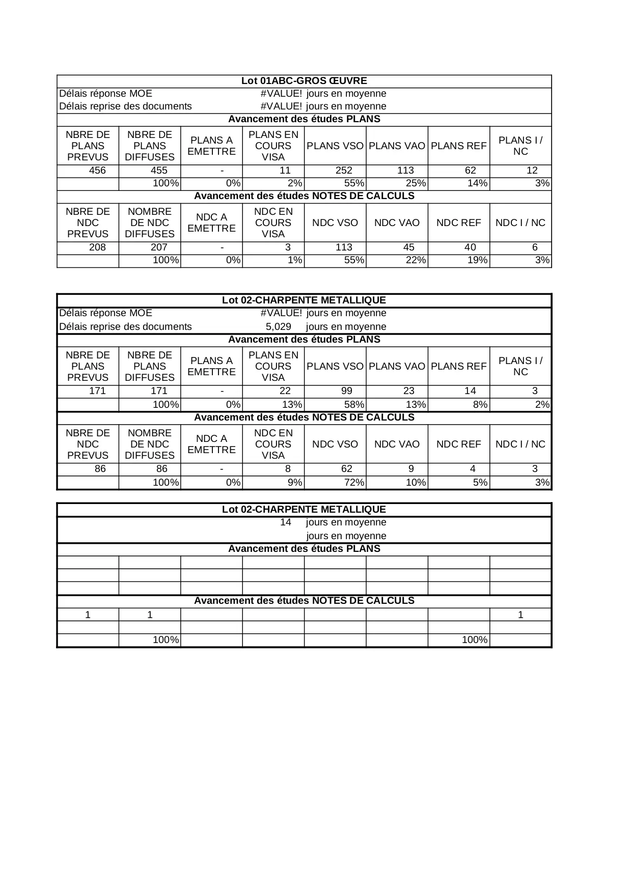avancement plans nombre delais calculs moyenne notes prevus documents etudes cours jours metallique diffuses emettre