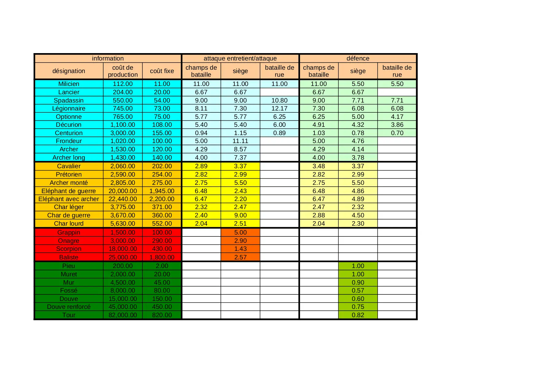 information guerre archer douve baliste optionne siege bataille muret elephant fosse renforce attaque legionnaire champs