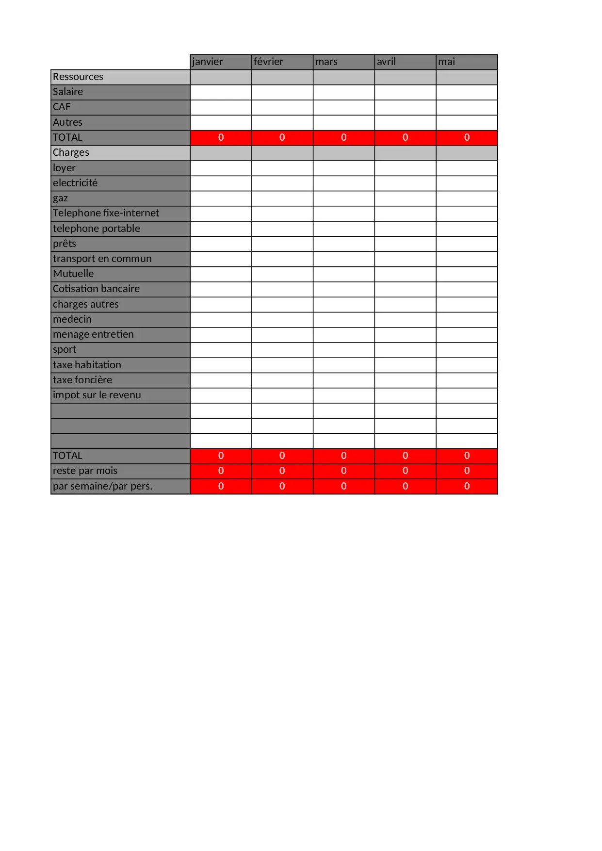 fonciere medecin charges menage telephone janvier autres entretien bancaire sport commun cotisation impot habitation total