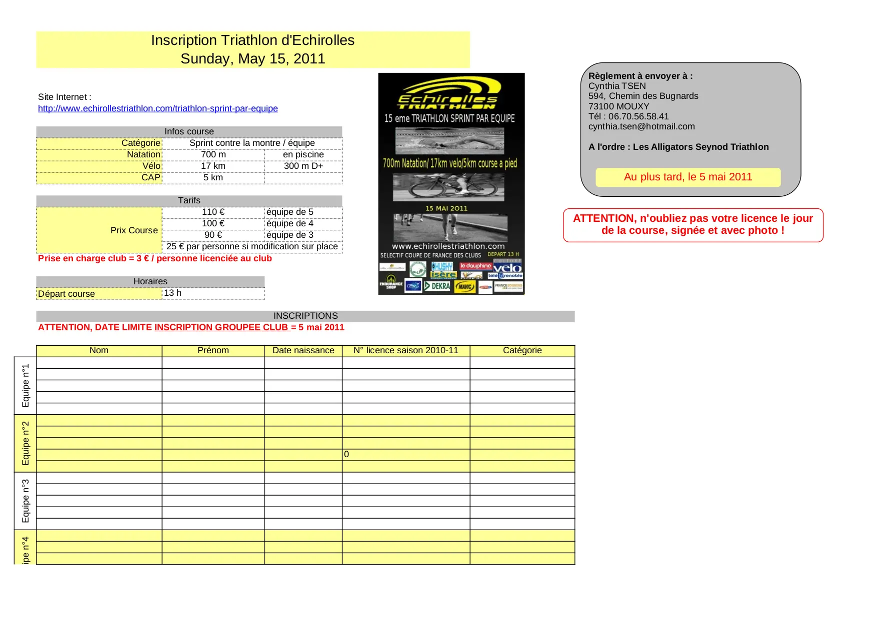 course inscription equipe licence categorie charge personne prenom attention naissance limite triathlon sprint inscriptions groupee