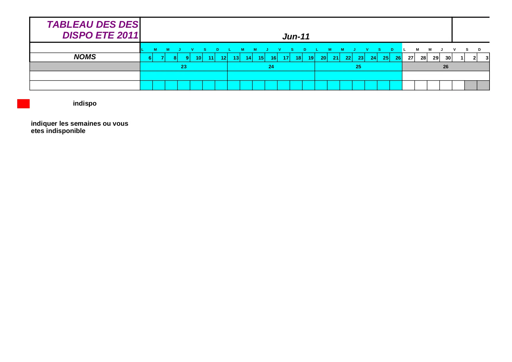 iiiii indiquer fffff ooooo ggggg lllll mmmmm indispo dispo hhhhh tableau jjjjj semaines nnnnn kkkkk
