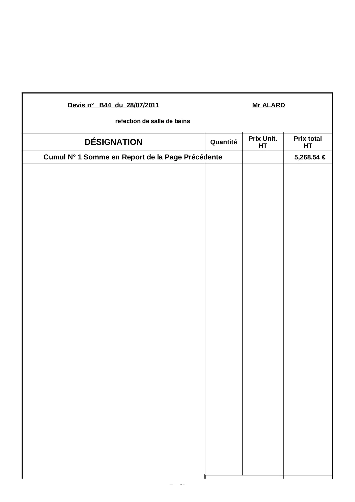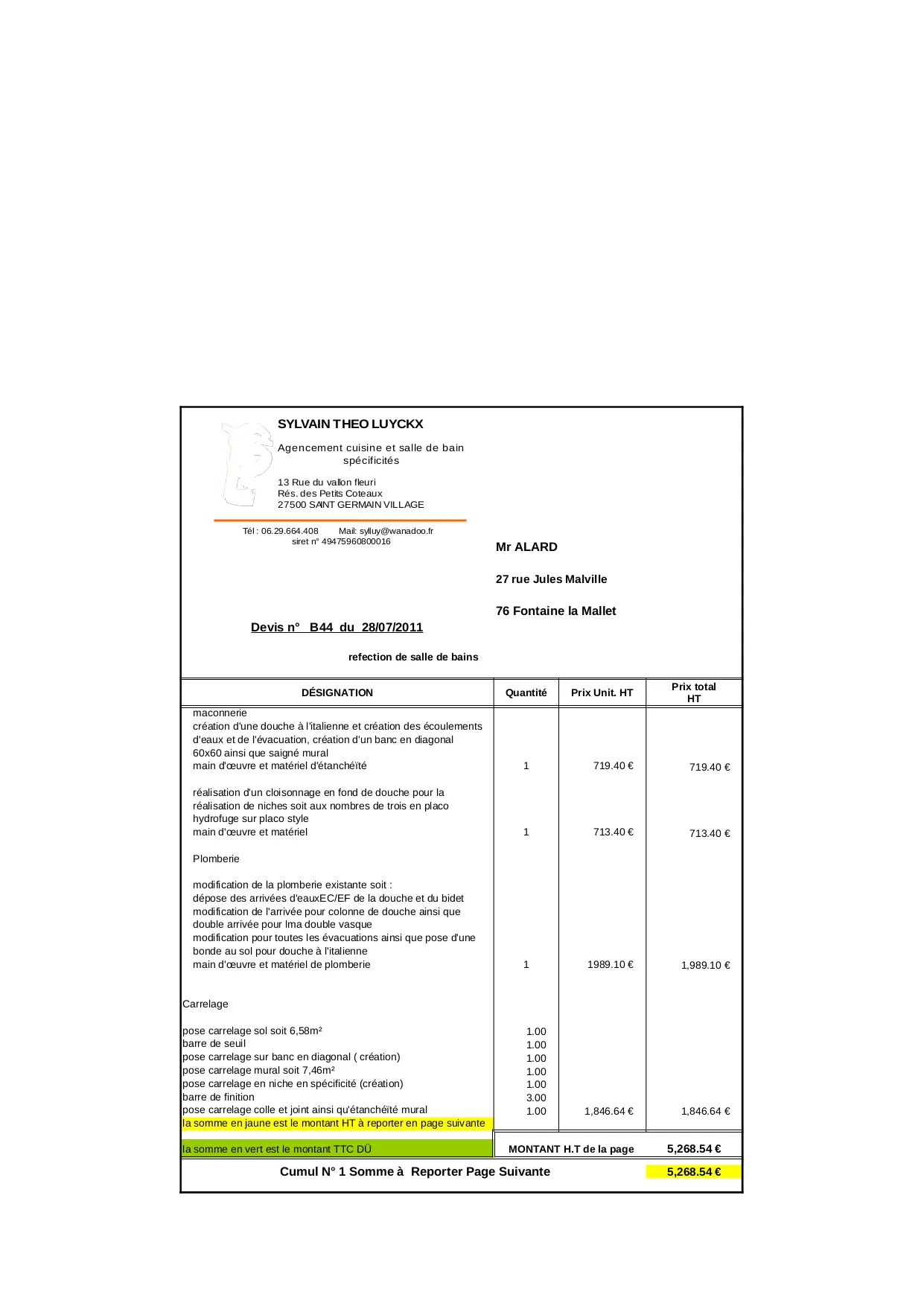 total carrelage devis somme mural montant douche creation feuil modification facture ainsi materiel remise plomberie