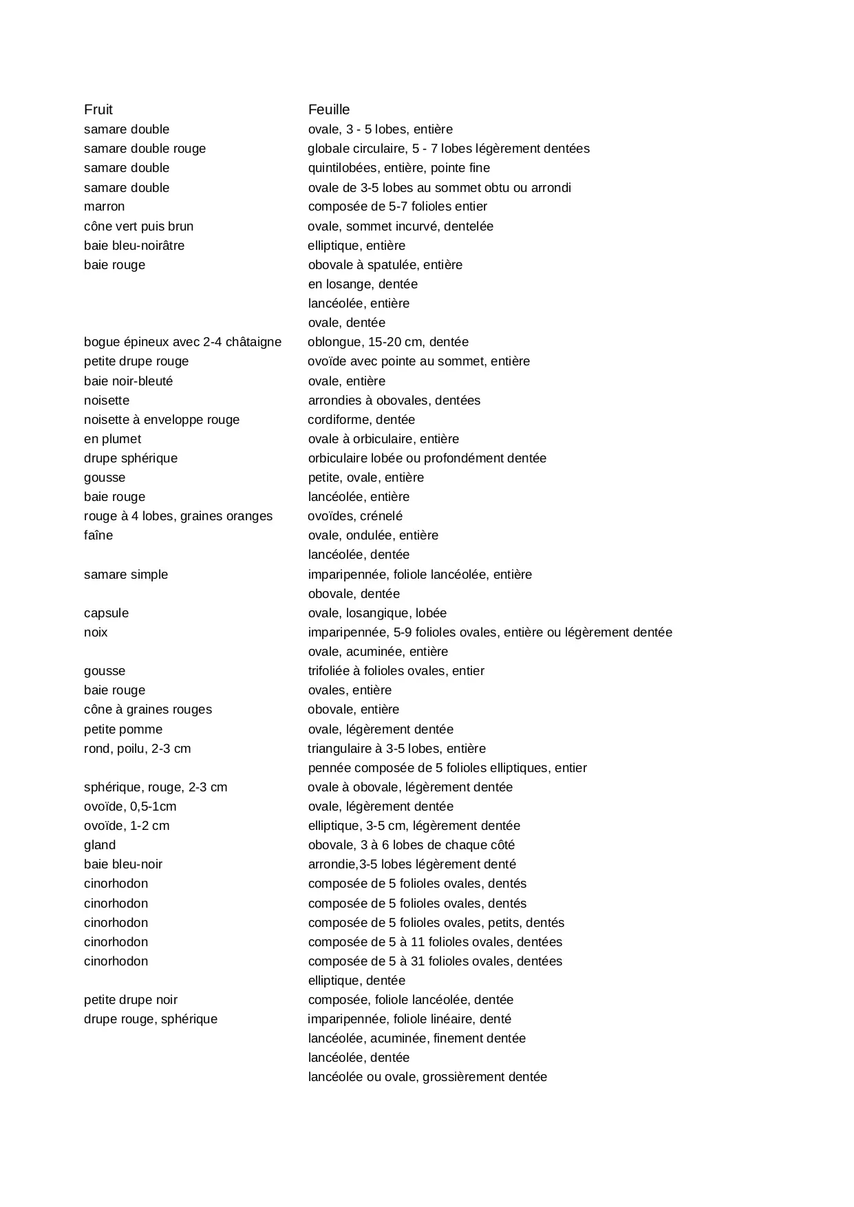 arbres + arbustes +resineux (XLS)