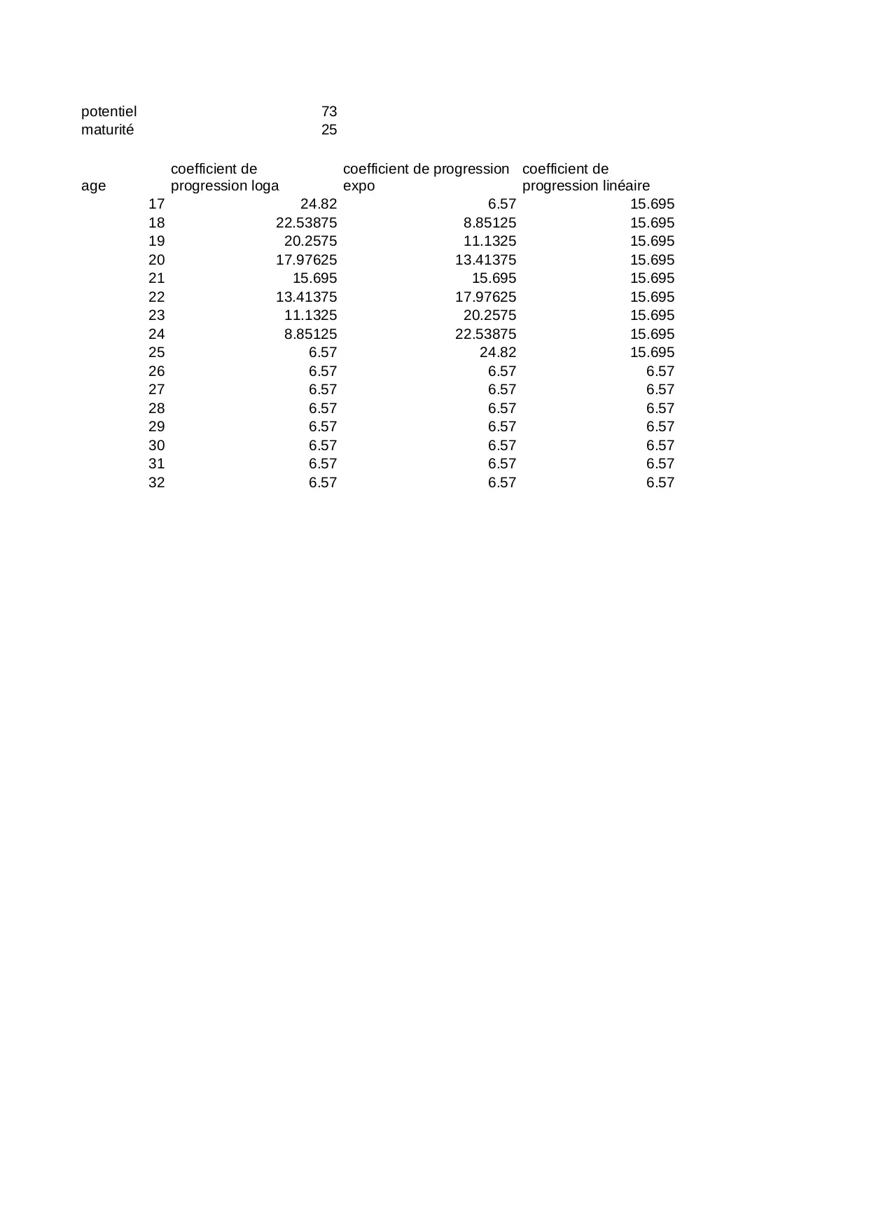 lineaire progression potentiel coefficient maturite
