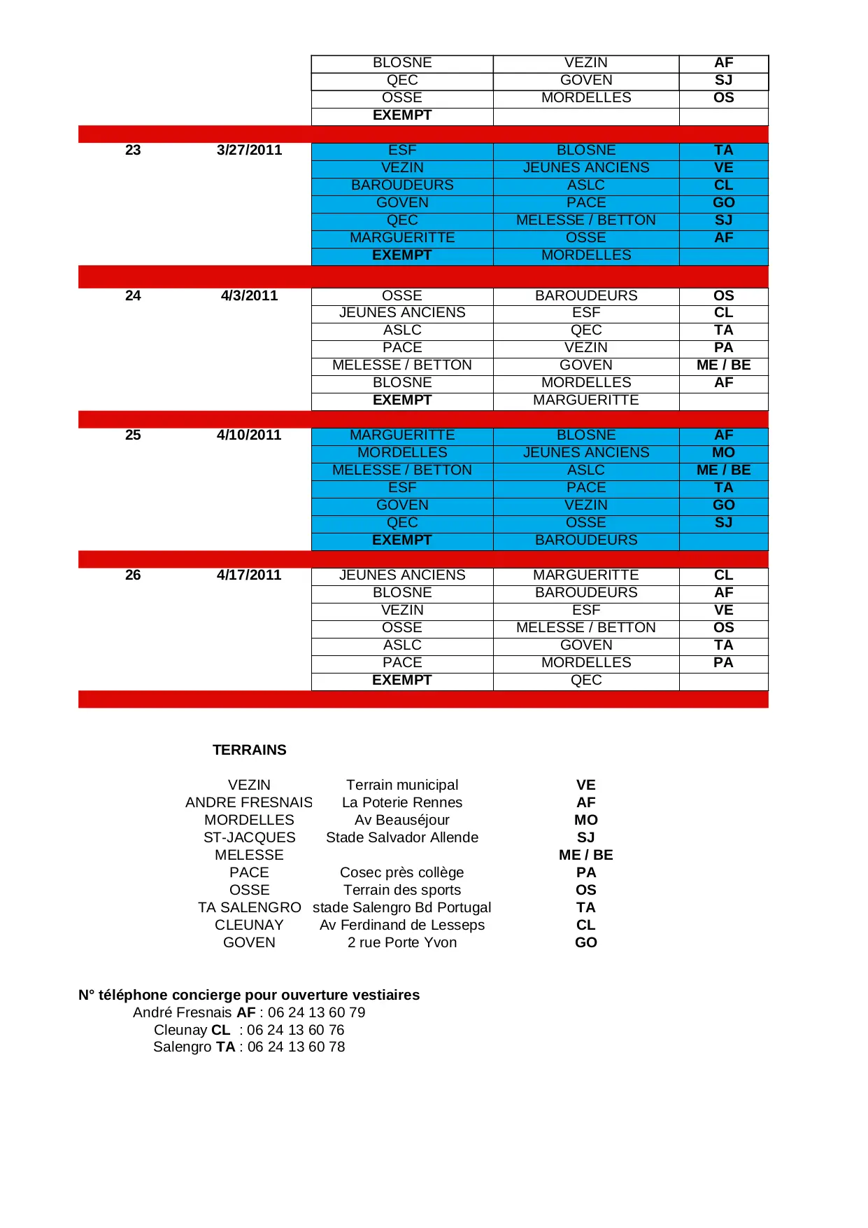 vezin baroudeurs margueritte betton blosne terrain mordelles exempt salengro anciens melesse cleunay fresnais goven jeunes