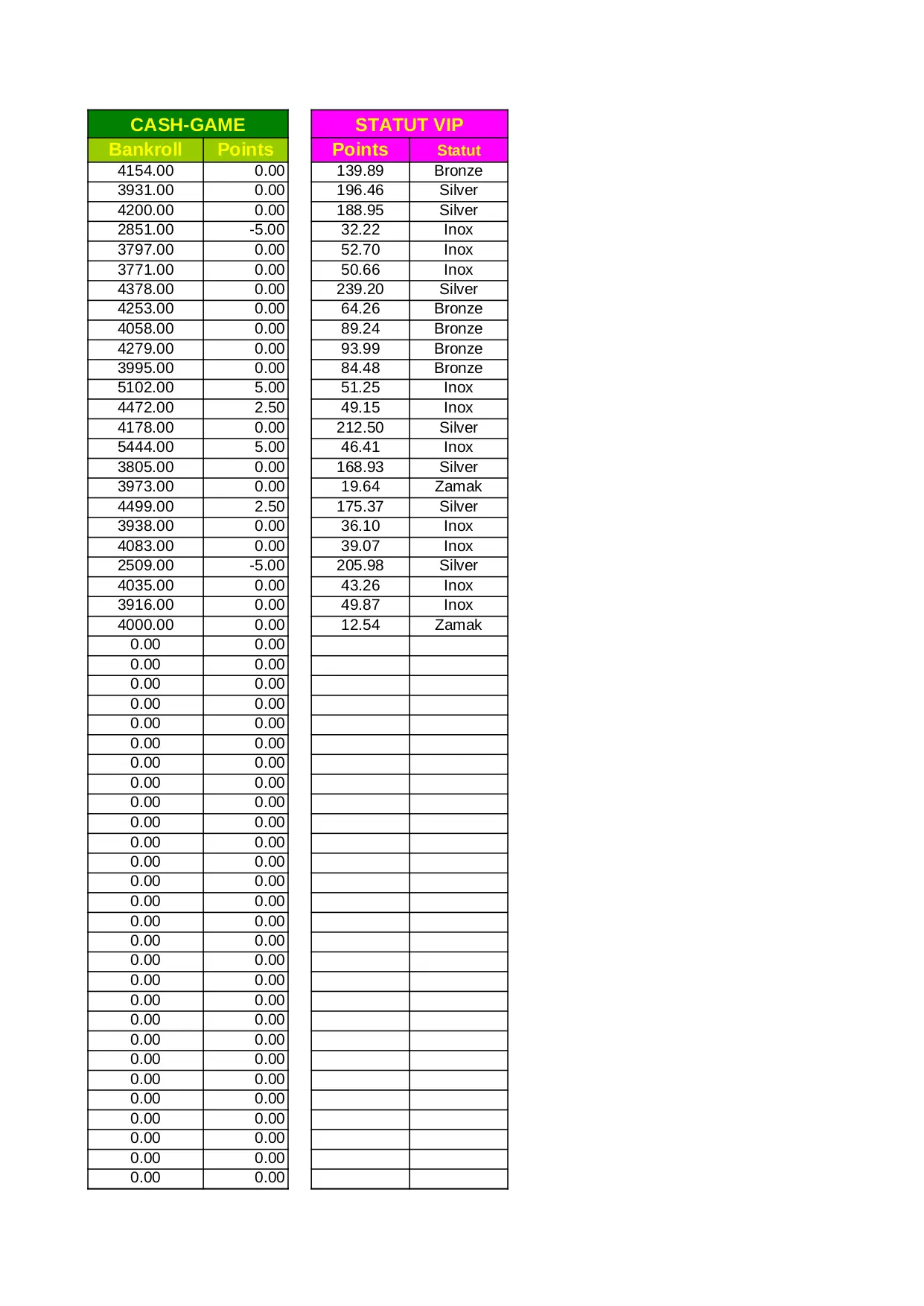 Poker Private Club - Classement et Tournois - version 30 mai 2010 - classement 30 septembre 2011 (XLS)