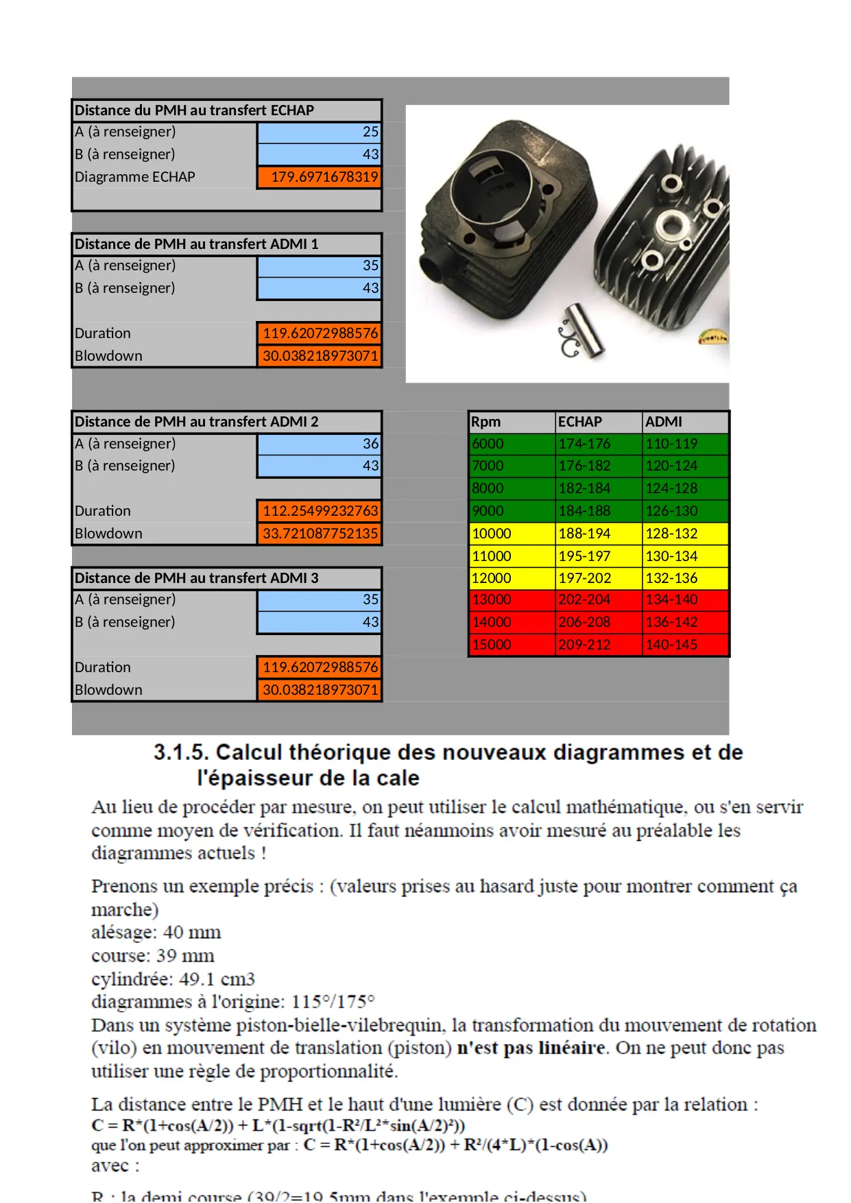 calcul echap blowdown bielle epaisseur transfert longueur renseigner diagramme course duration croisement attention joint distance