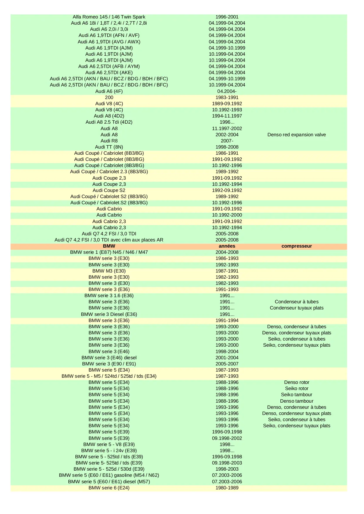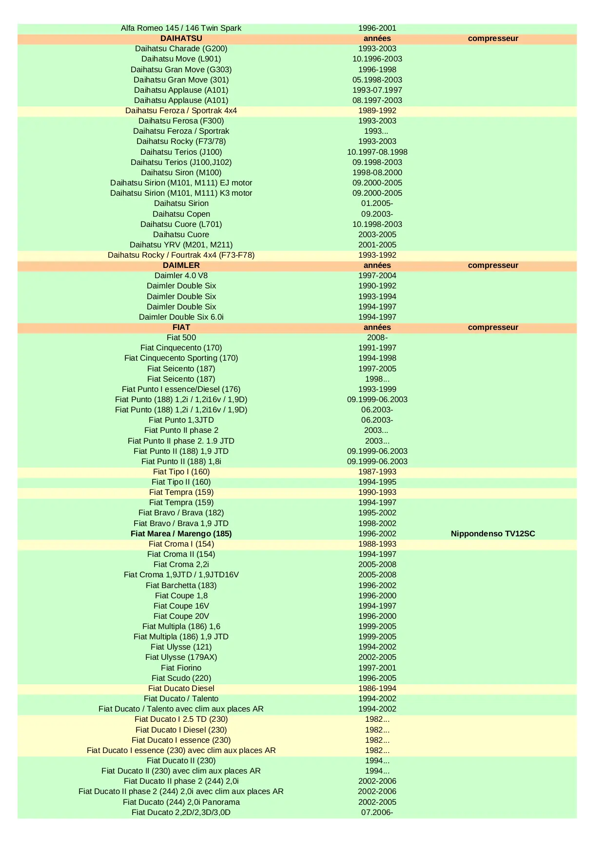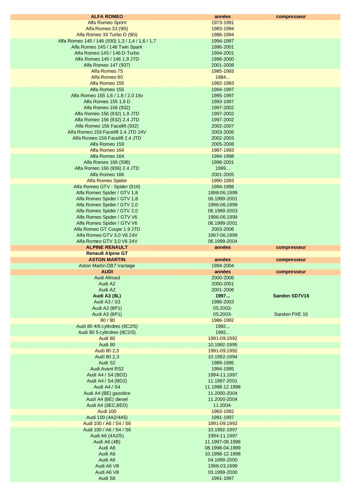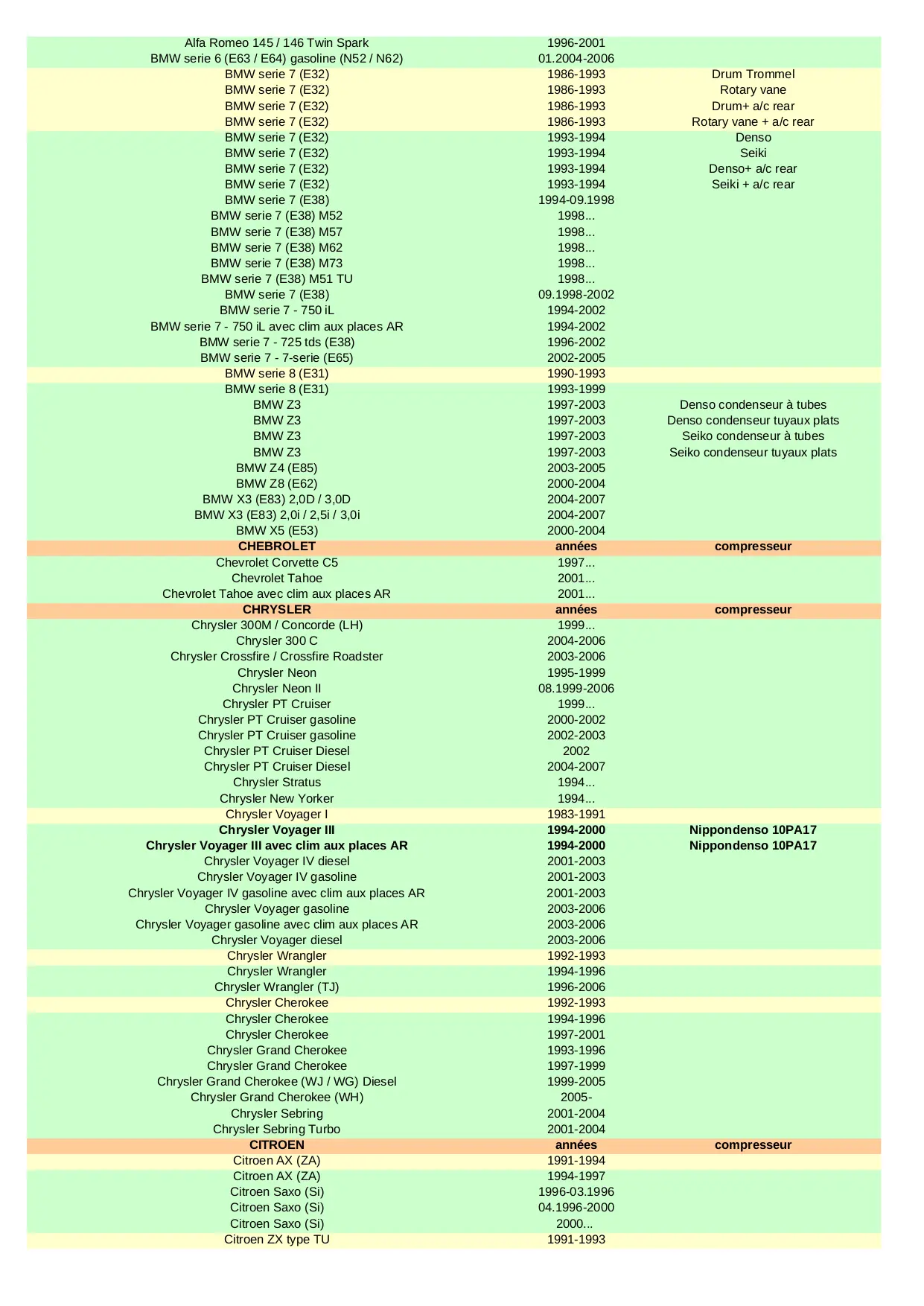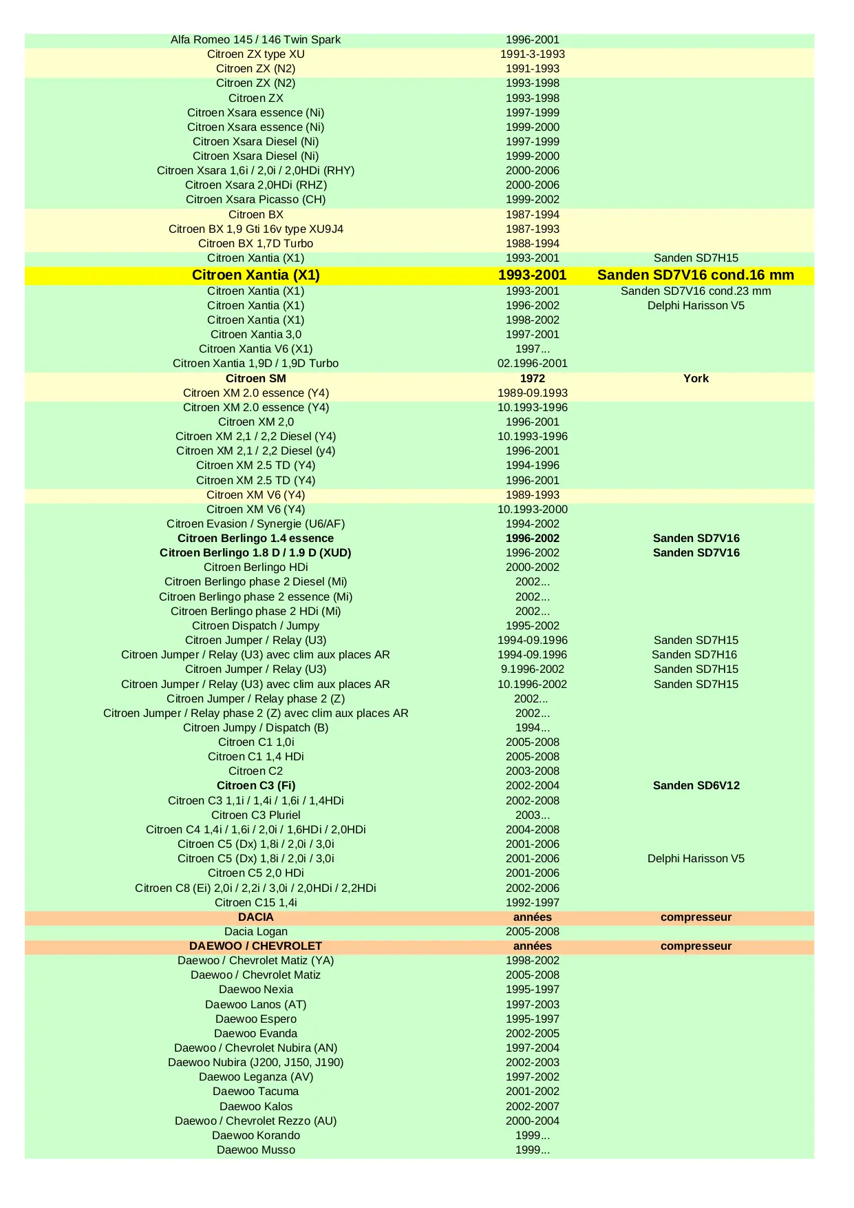 places nissan renault serie r134a peugeot volkswagen hyundai sanden mercedes citroen phase mitsubishi diesel toyota