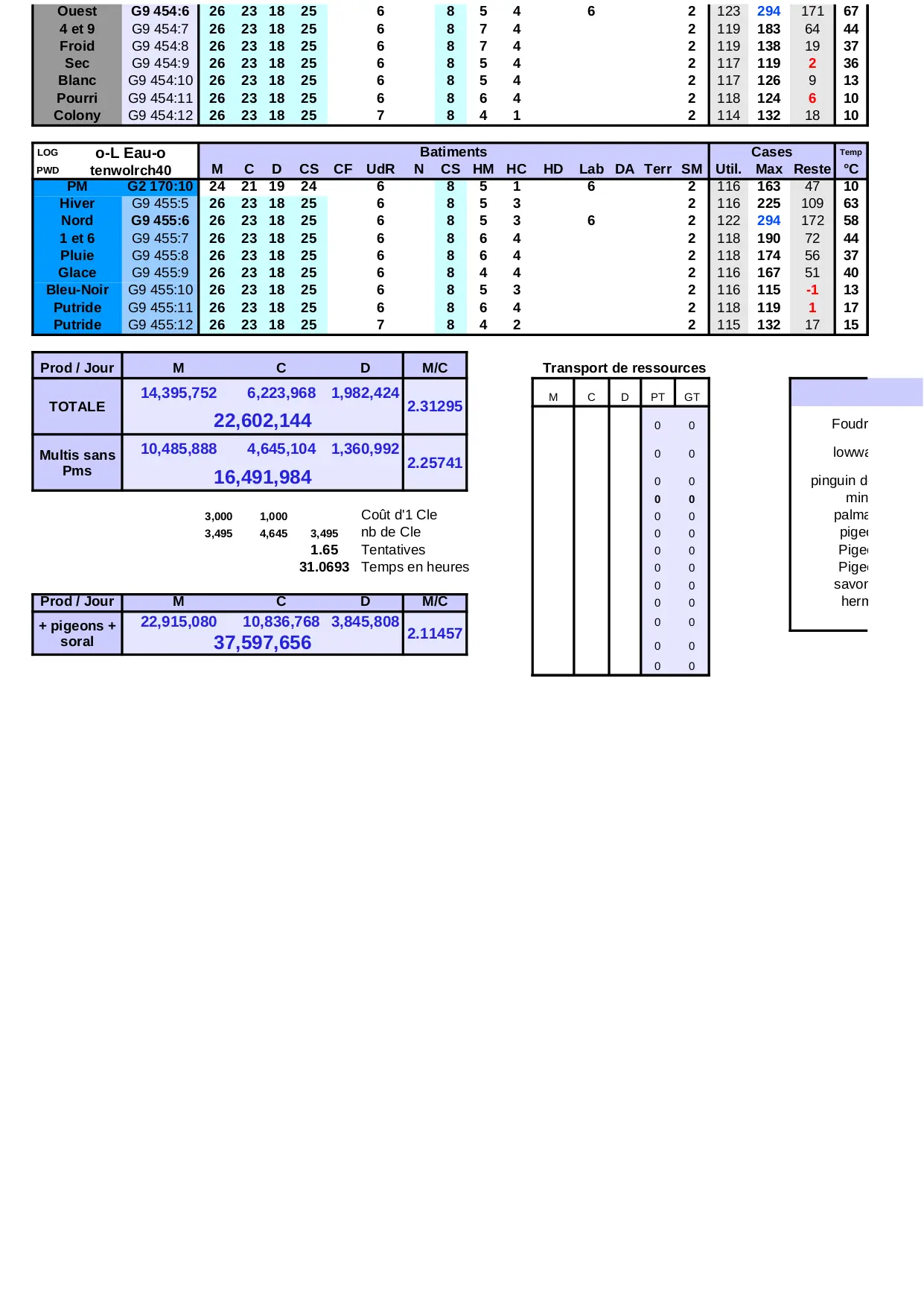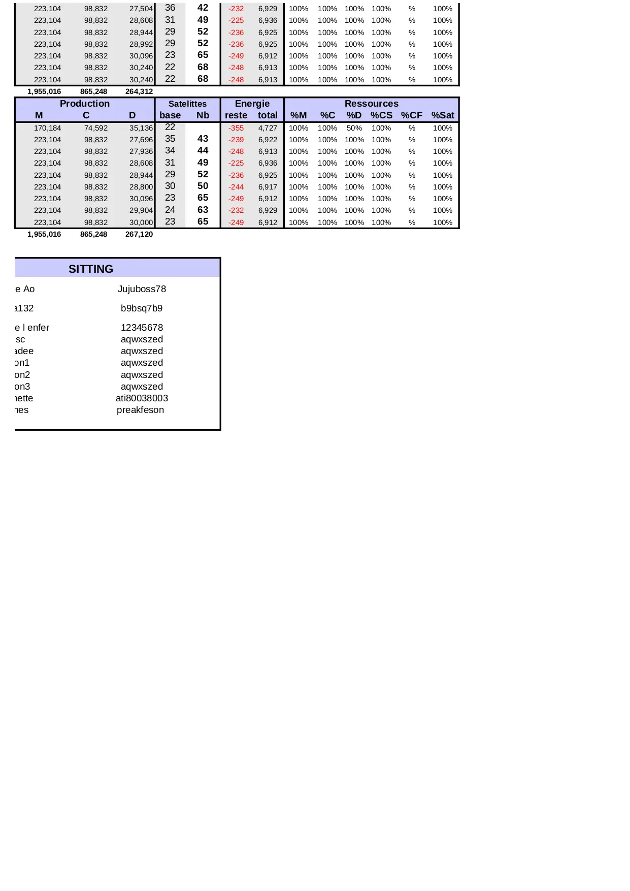 batiments aqwxszed cases production phalange reste energie lemotdepasse ressources total terre colony popop metal satelittes