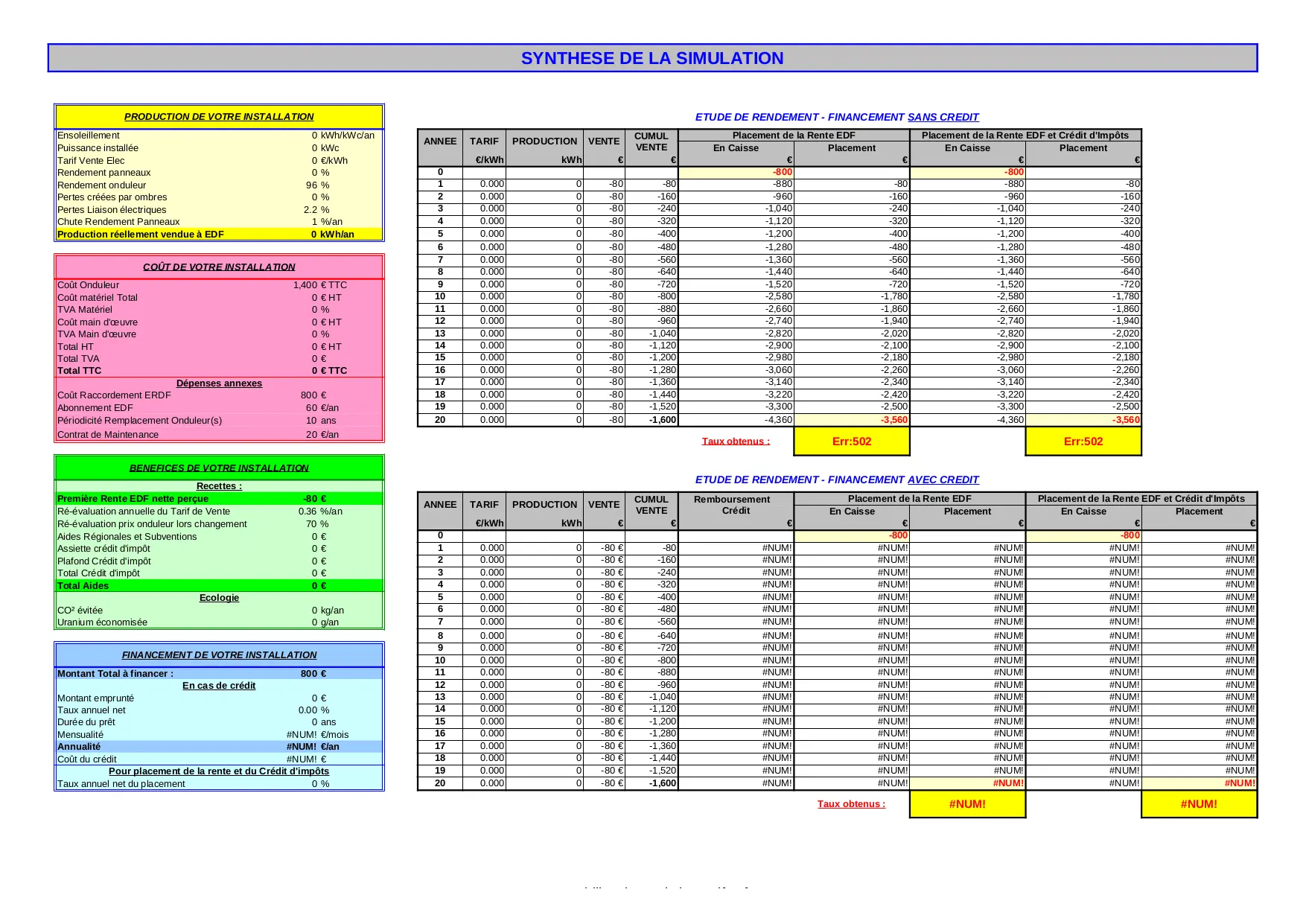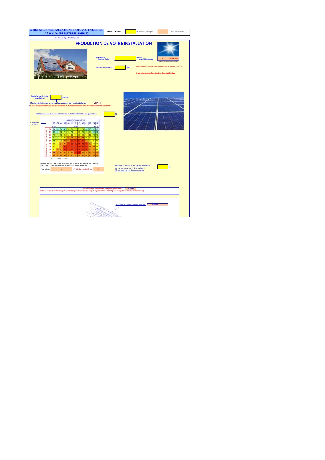 SIMULATEUR PHOTOVLTAIQUE PRE ETUDE (XLS)