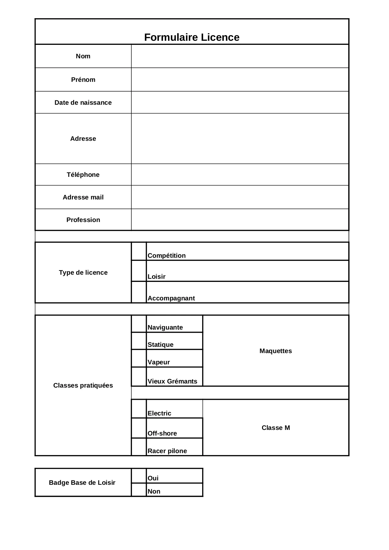 formulaire licence (XLS)