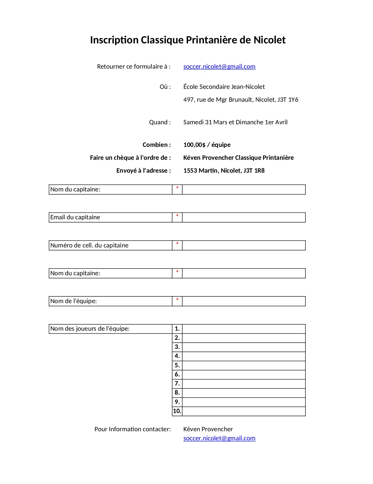 envoye ordre nicolet capitaine provencher adresse numero equipe printaniere inscription soccer classique keven gmail martin