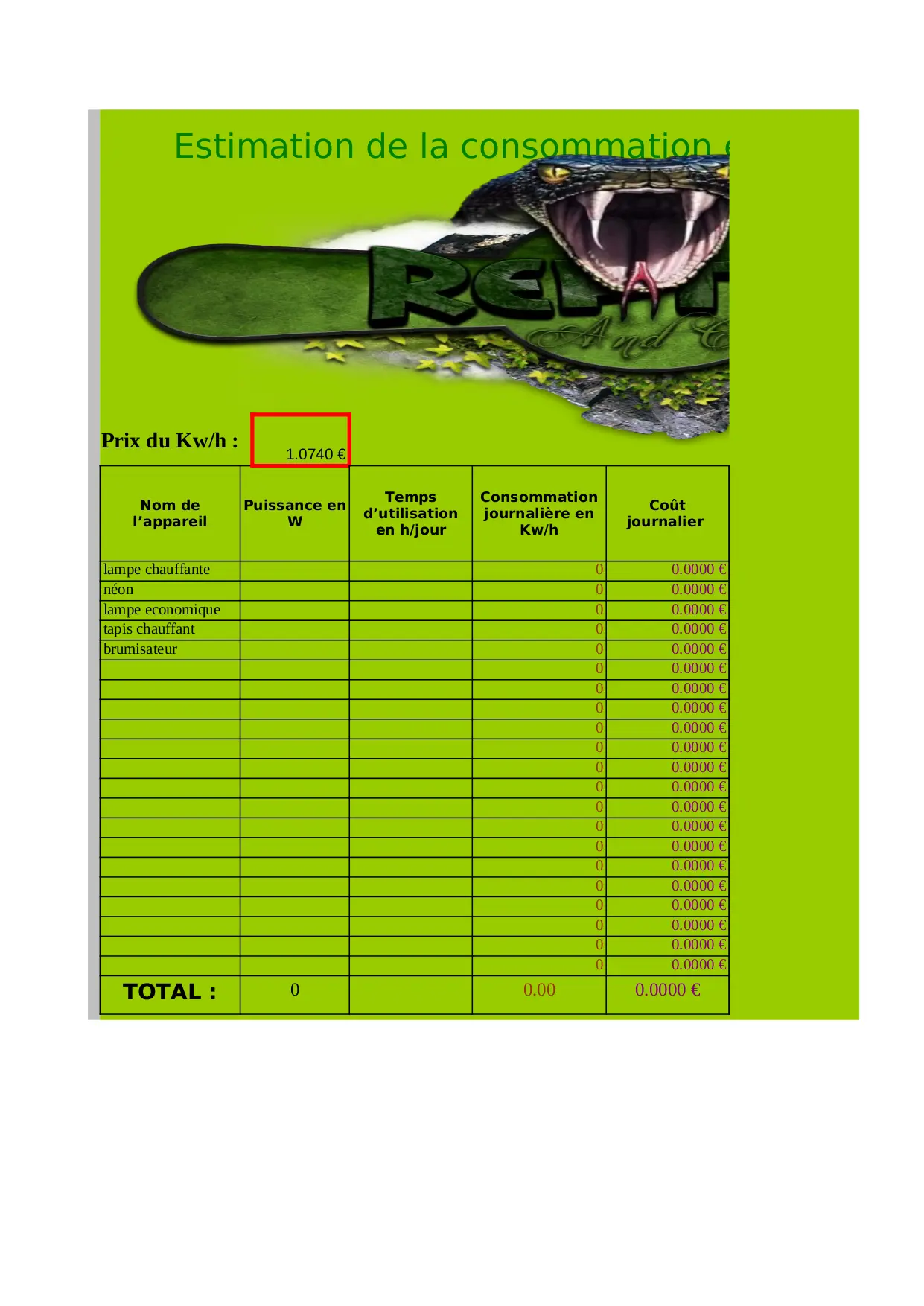 journalier lampe economique annuelle mensuelle chauffant mensuel utilisation chauffante annuel tapis journaliere brumisateur estimation consommation