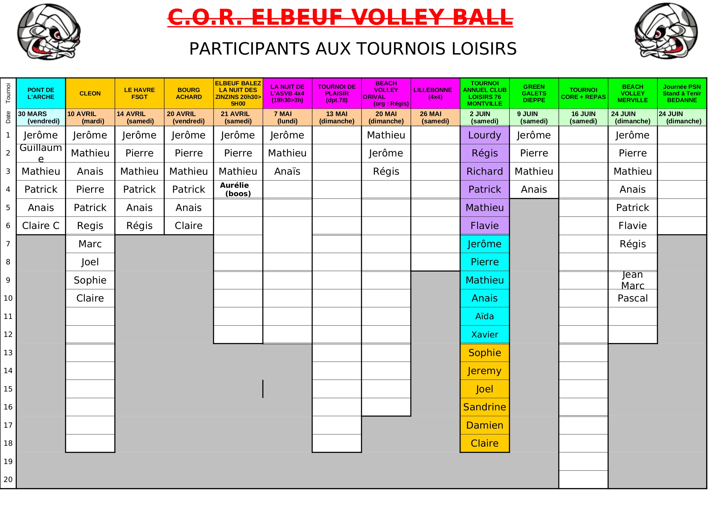 sophie anais avril beach tournoi samedi dimanche mathieu flavie patrick vendredi regis pierre jerome claire