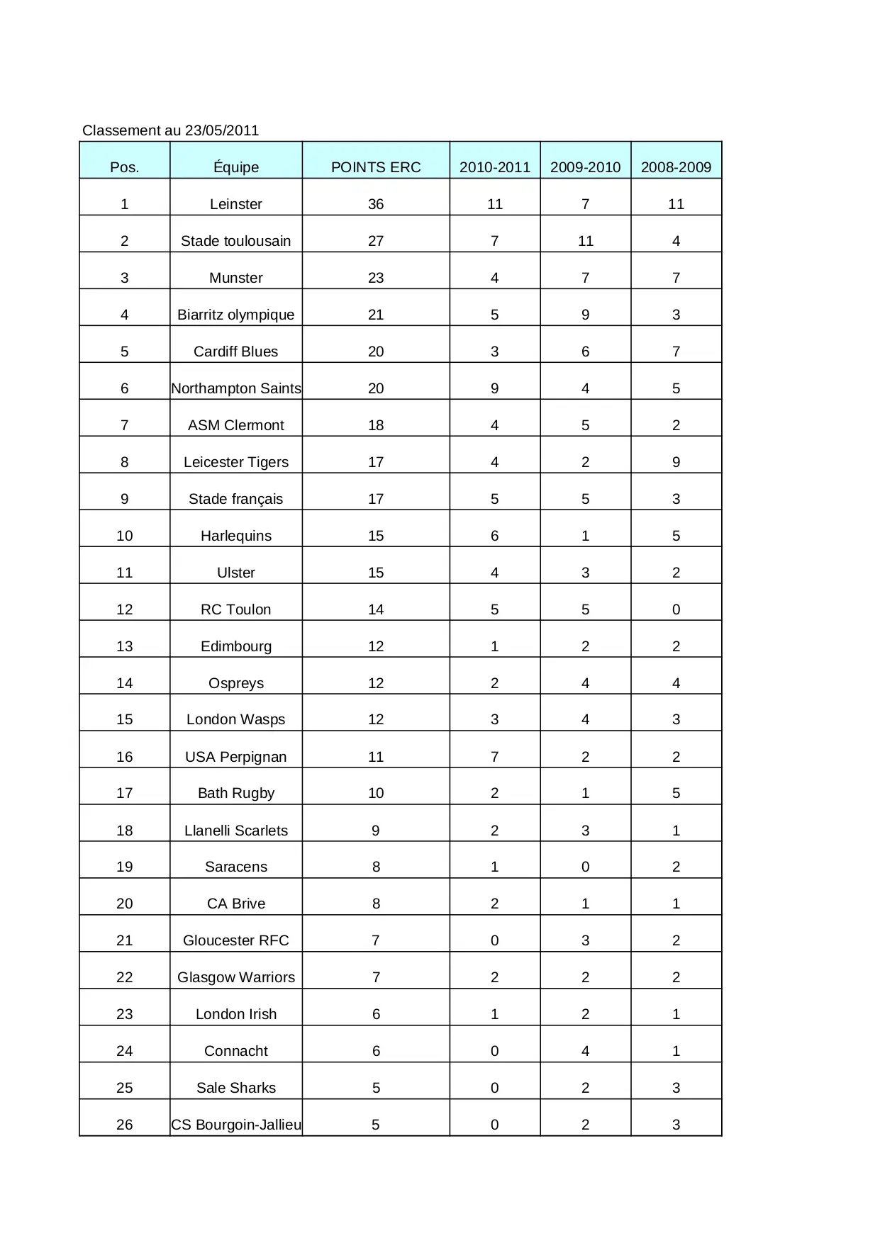 glasgow classement gloucester stade connacht brive london olympique trevise sharks bourgoin irish warriors jallieu benetton