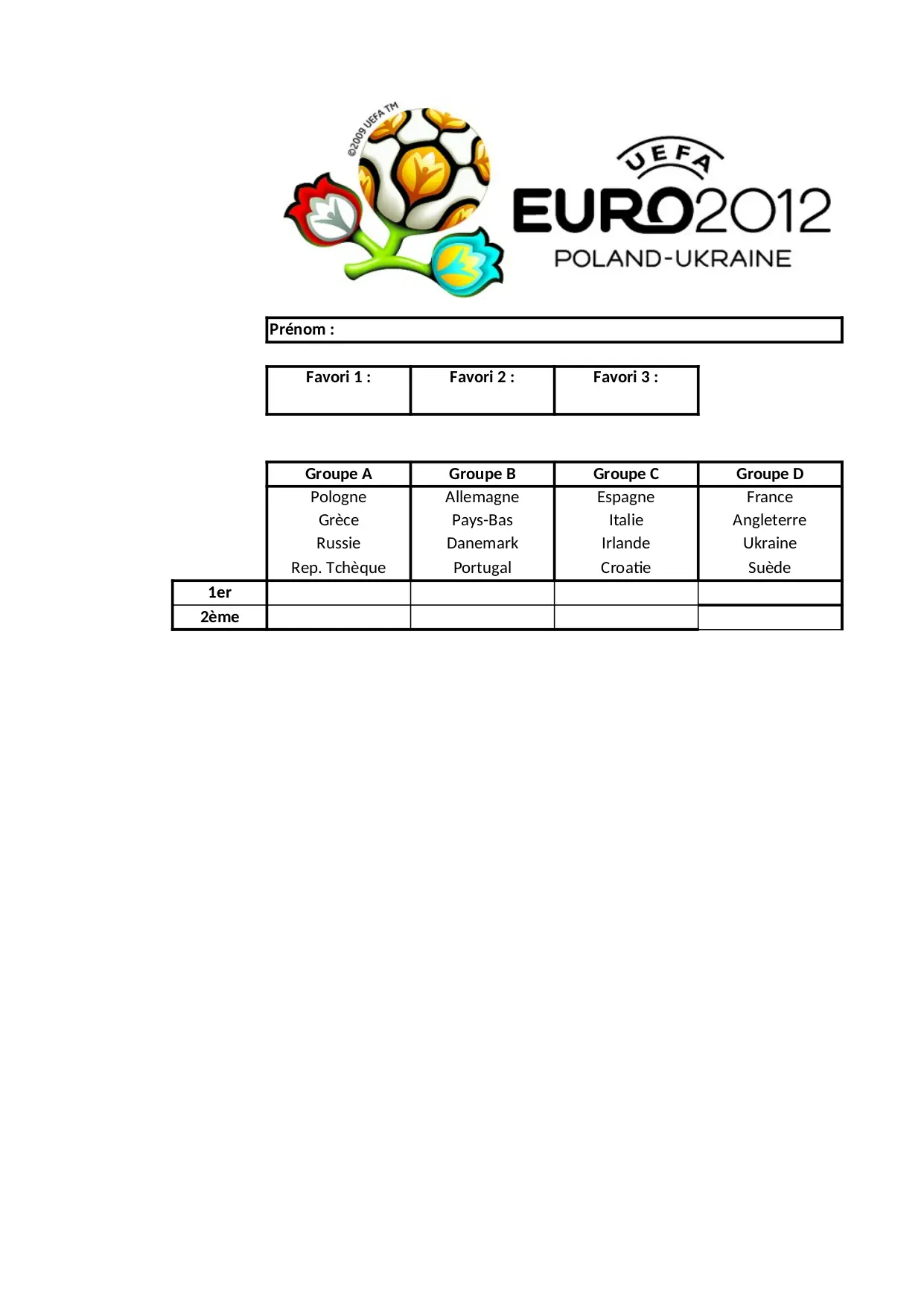 irlande france ukraine groupe grece portugal espagne tcheque angleterre prenom croatie danemark russie favori italie