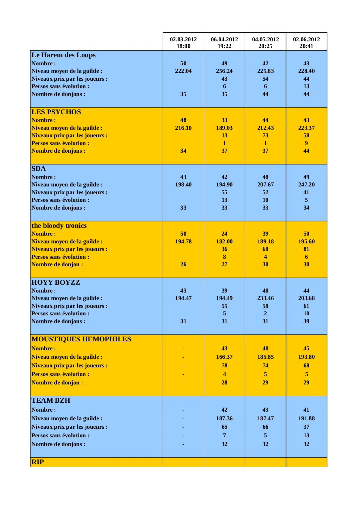 gebudu51 fillante niveau moyen niveaux guilde evolution persos joueurs tchapak aracadis nombre loopioth robter donjons
