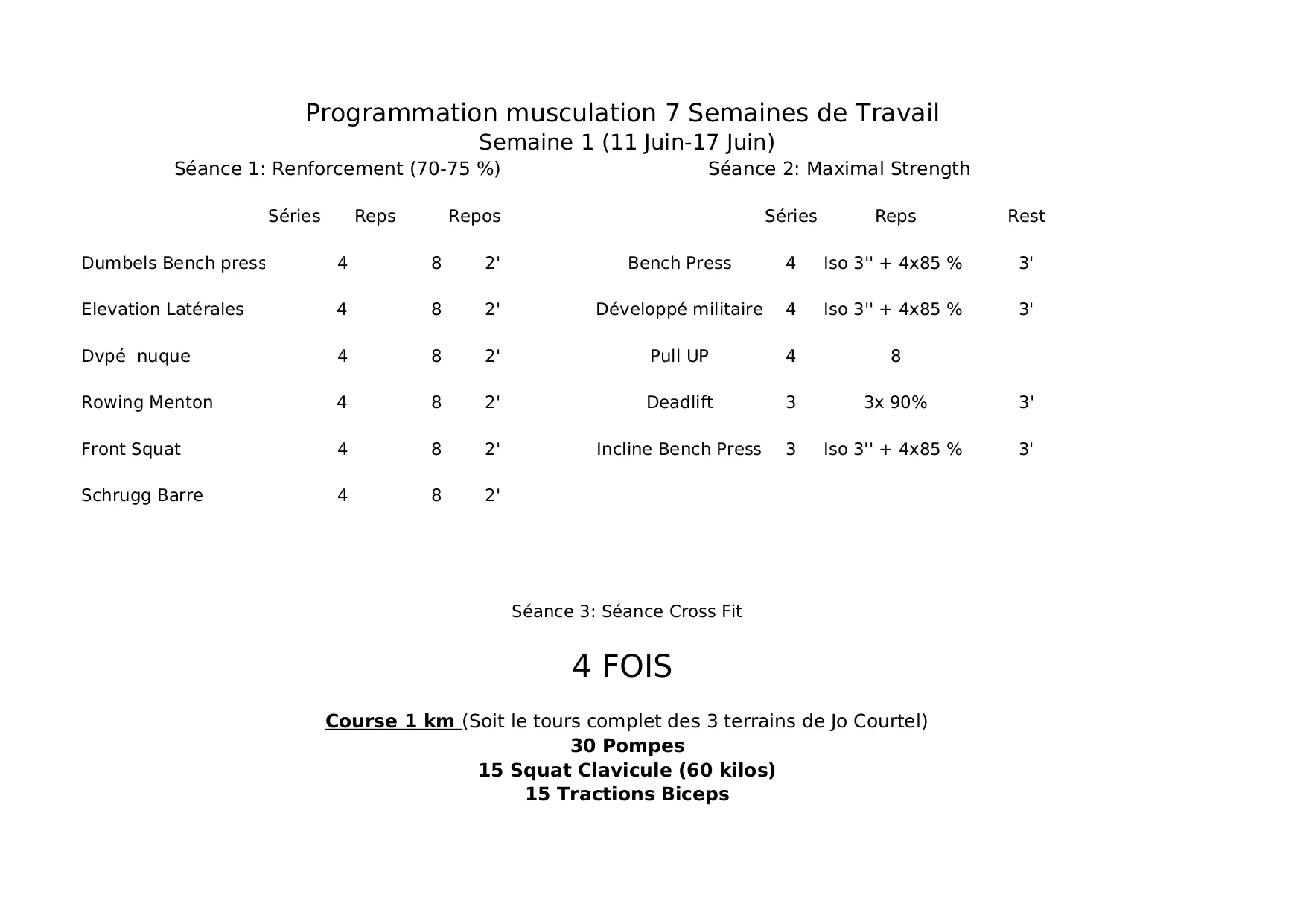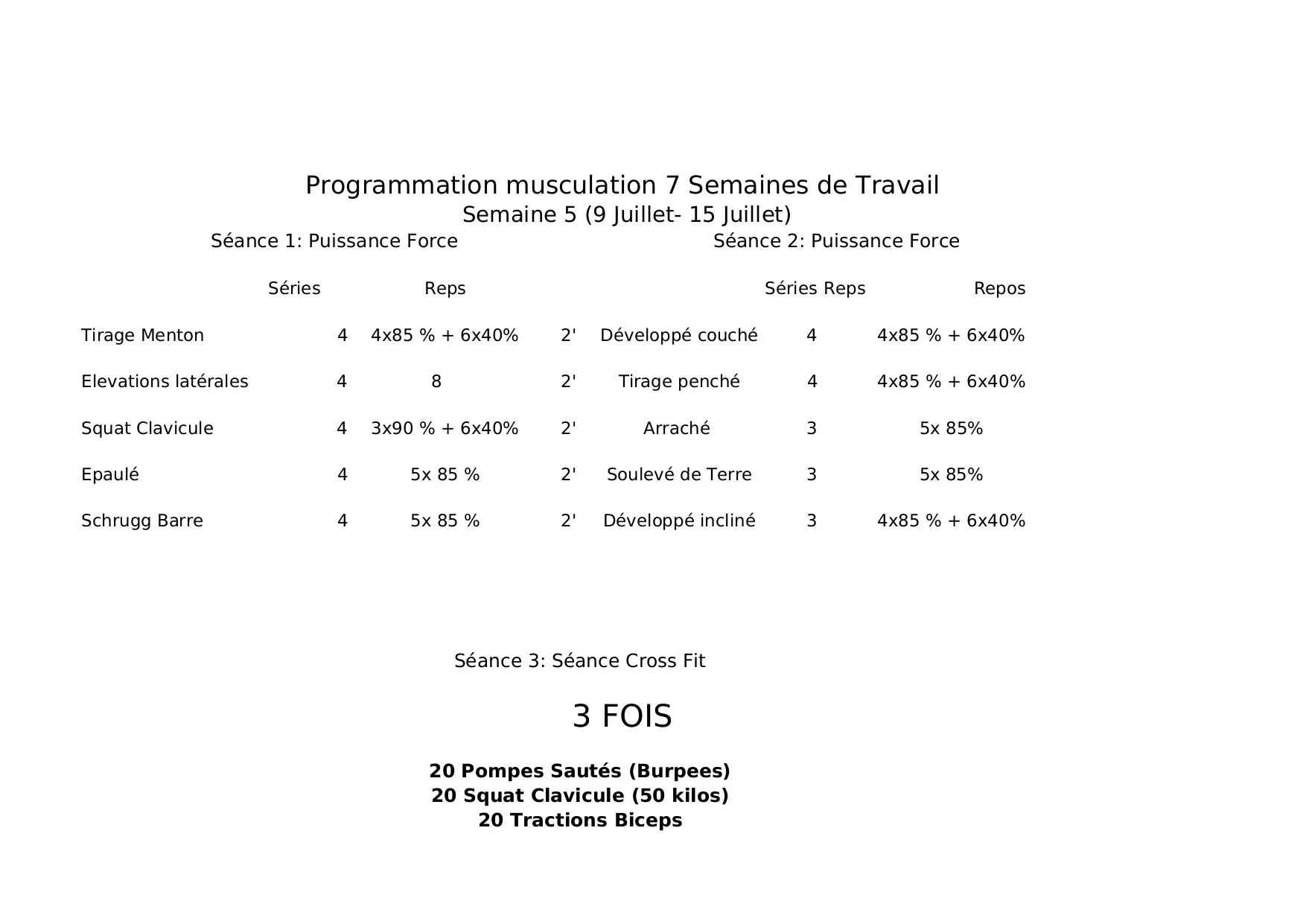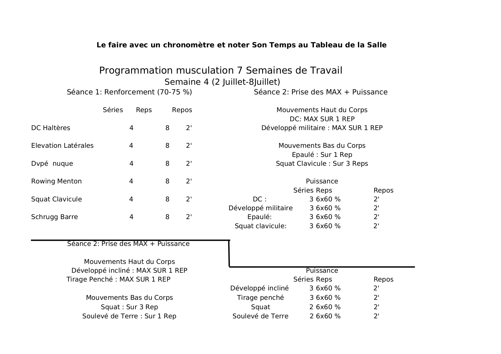 travail tirage squat clavicule incline puissance souleve juillet programmation repos series musculation developpe semaines seance