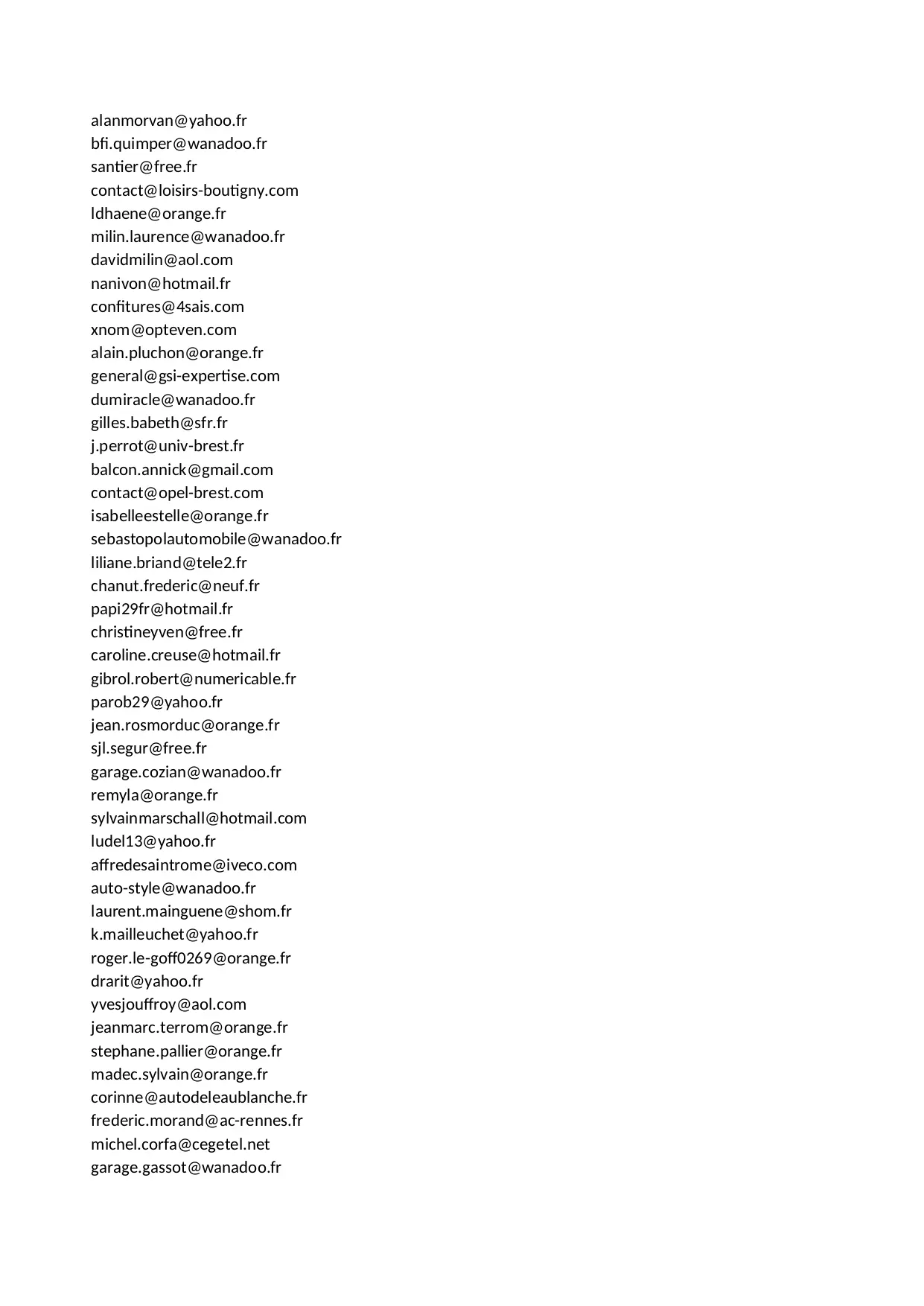marie cegetel michel aliceadsl garage alain wanadoo yahoo numericable voila gmail orange hotmail laposte brest