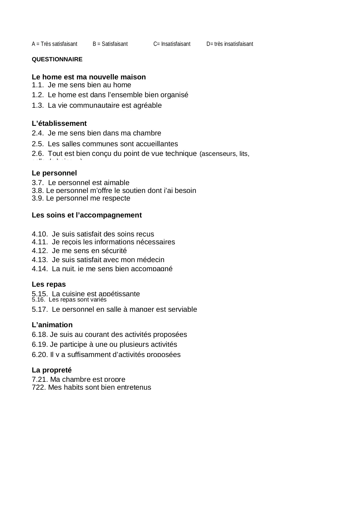 chambre salle insatisfaisant repas soins maison proposees satisfaisant animation etablissement accompagne medecin activites personnel satisfait