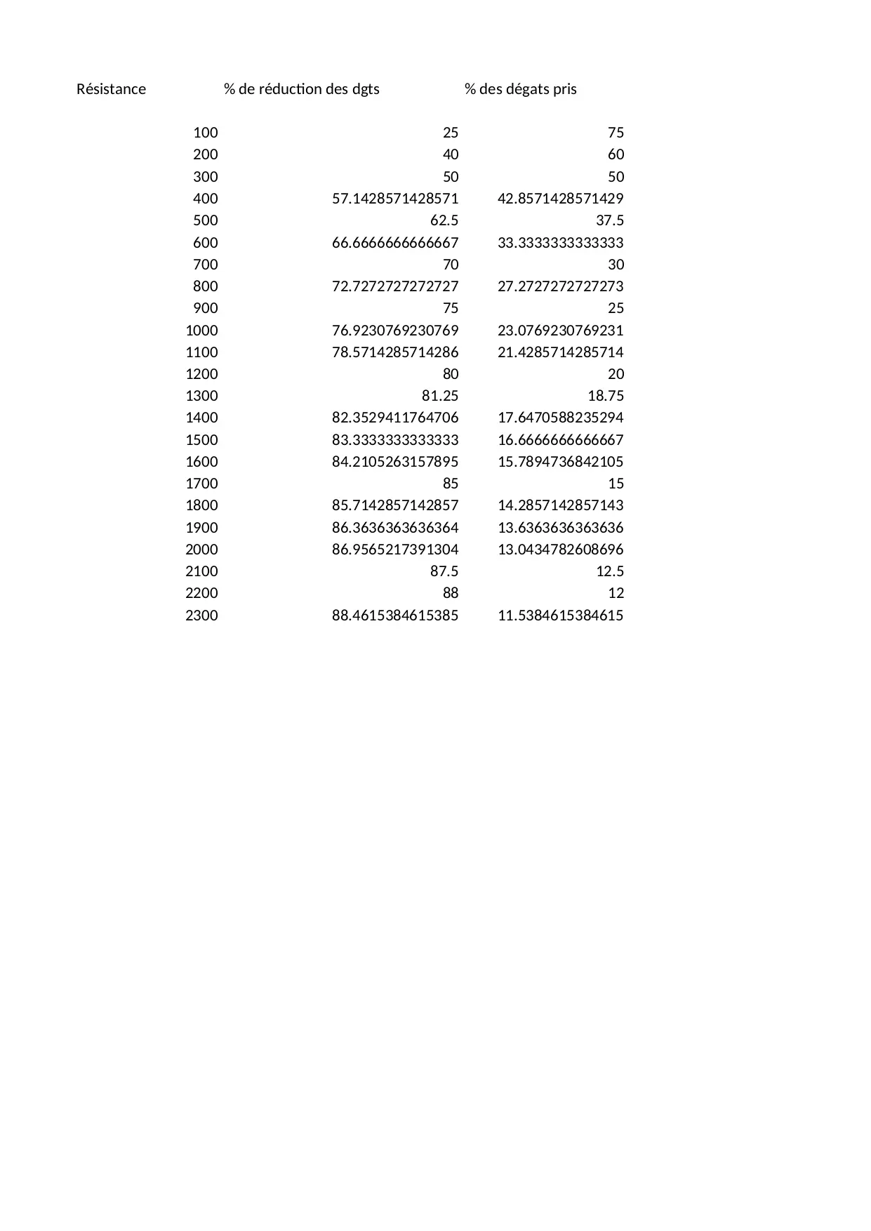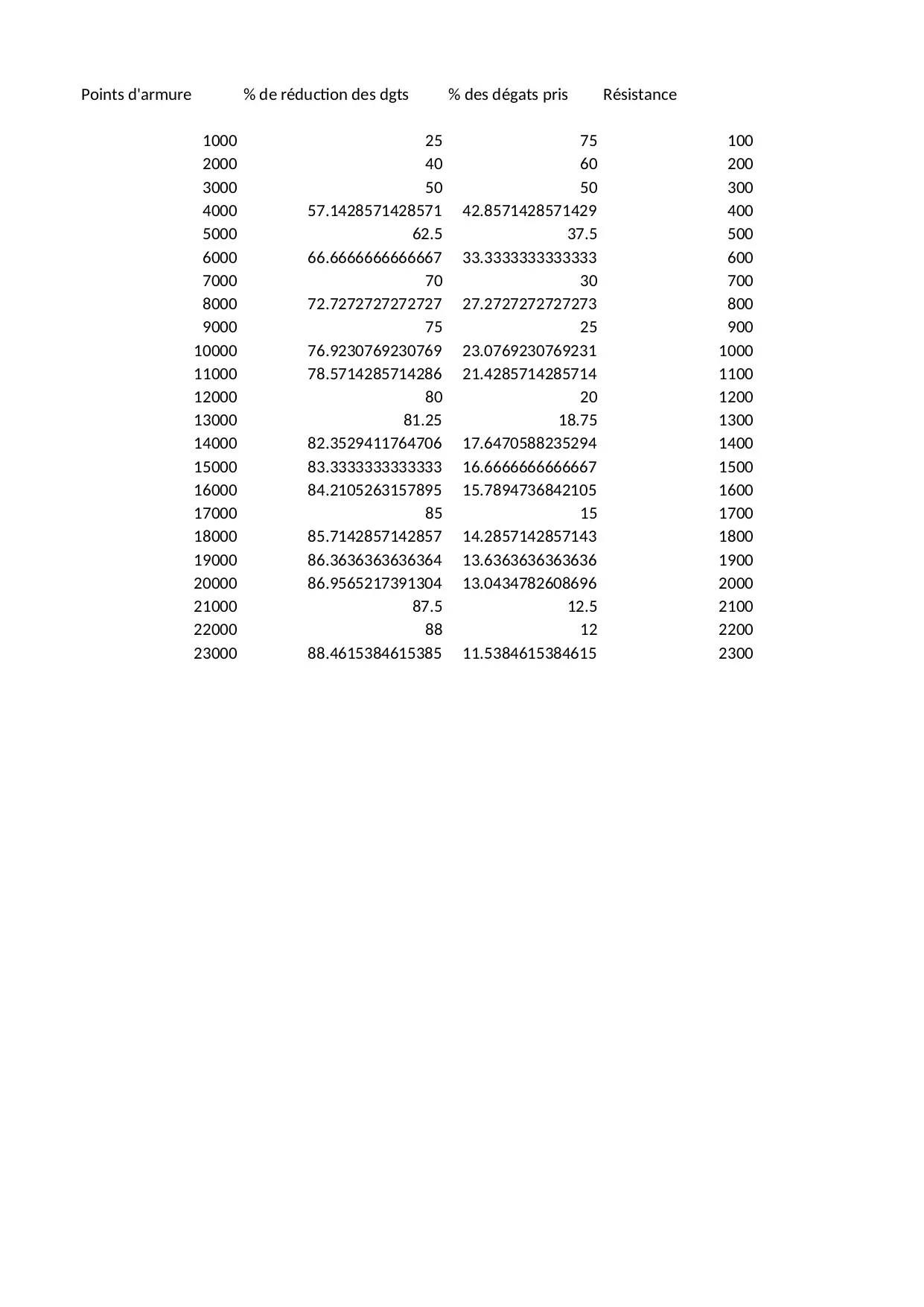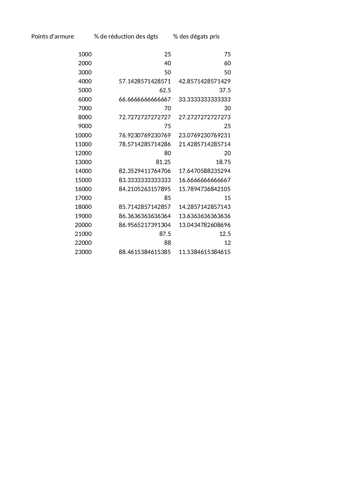 combien supporterai armure supportables coups nombre degats reduction points bruts
