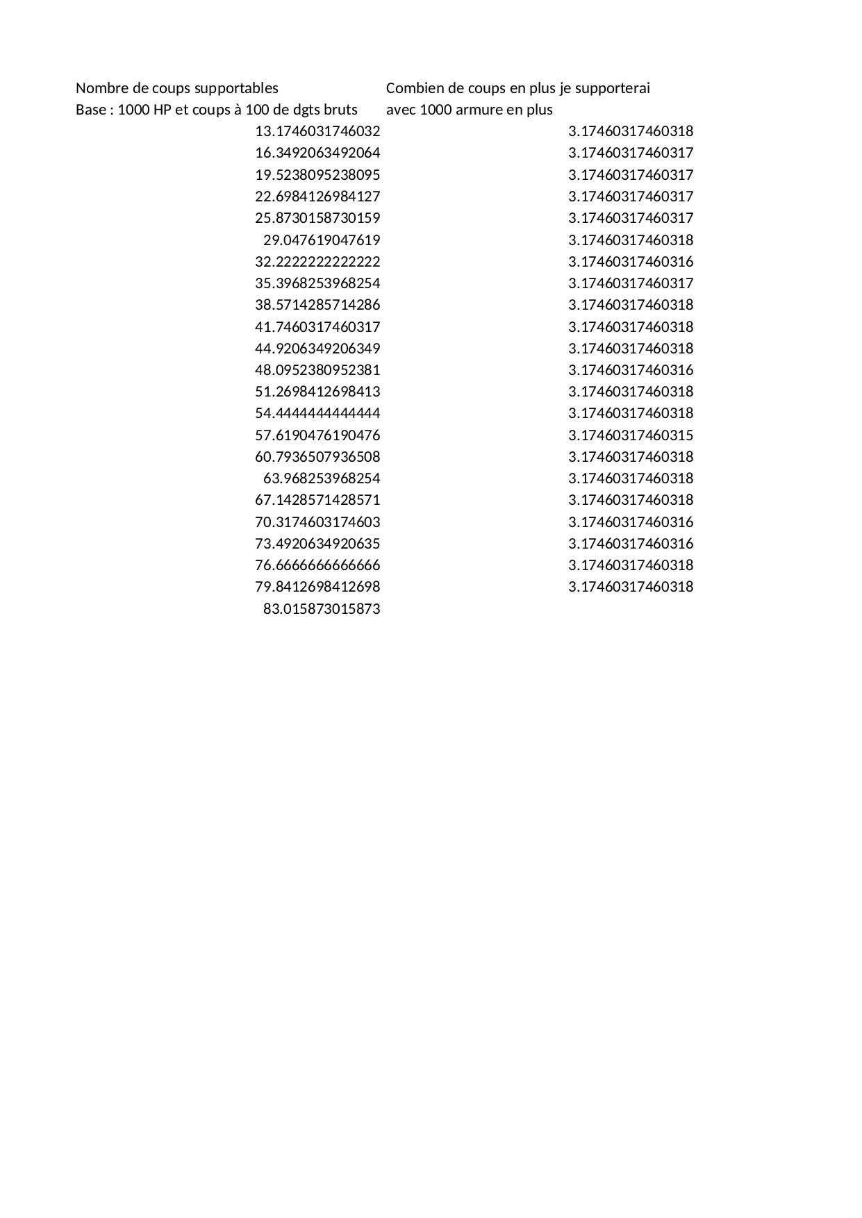 supporterai combien points bruts supportables degats armure reduction nombre coups