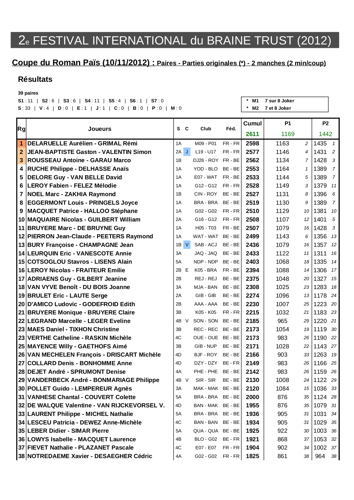 Festival BRA 2012 - Résultats (XLS)