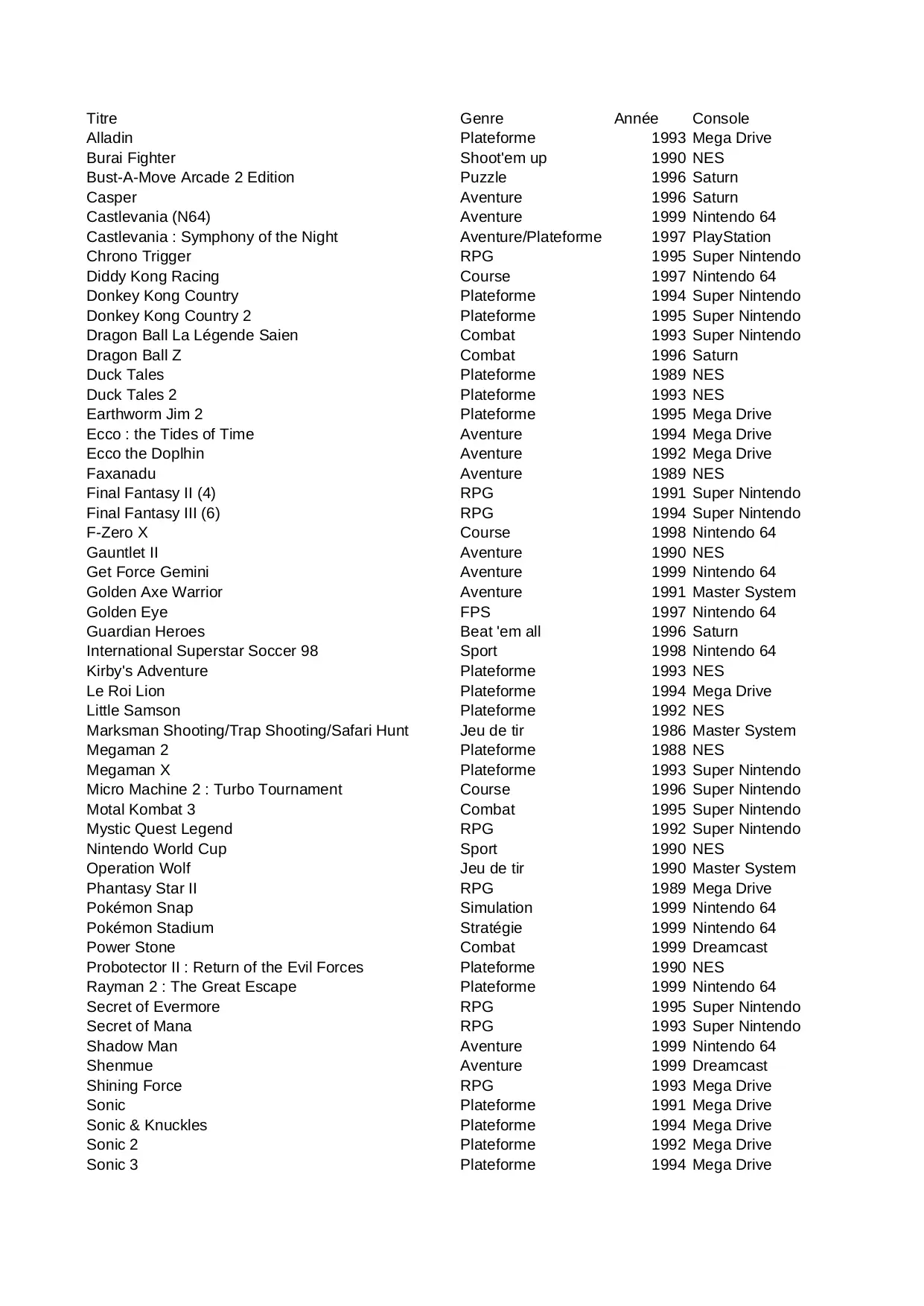 simultane mario saturn super drive system nintendo dragon aventure combat plateforme course sport sonic master