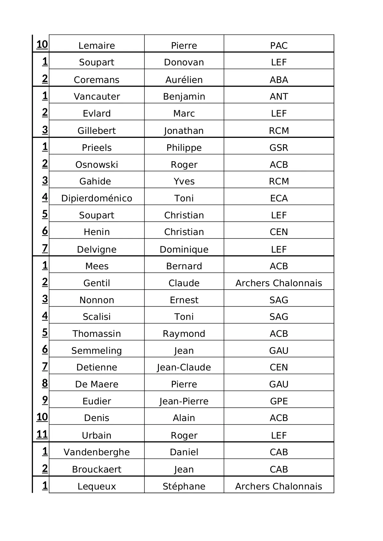 pascal francois thomassin jonathan alain archers roger wattiez chalonnais pierre claude osnowski denis soupart benoet