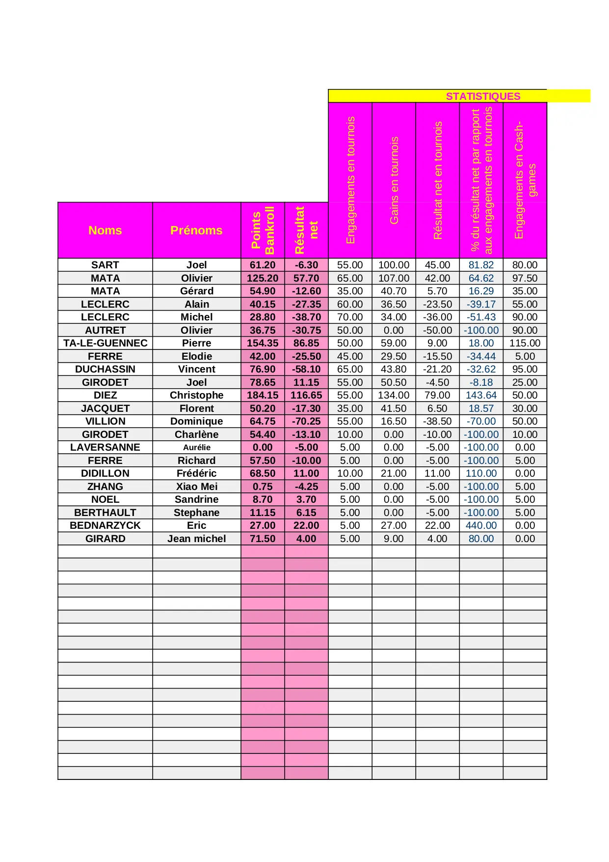 - Poker Private Club - Classement et Tournois - version 5 juillet 2012 - classement 25 janvier 2013.xls