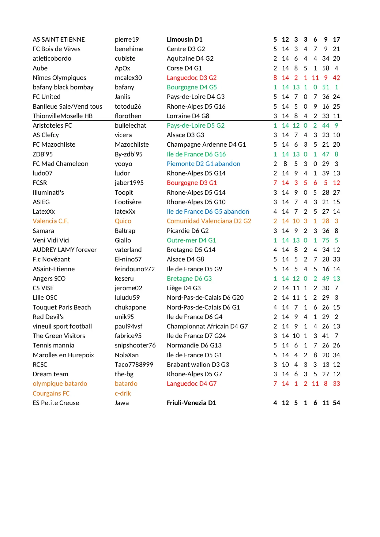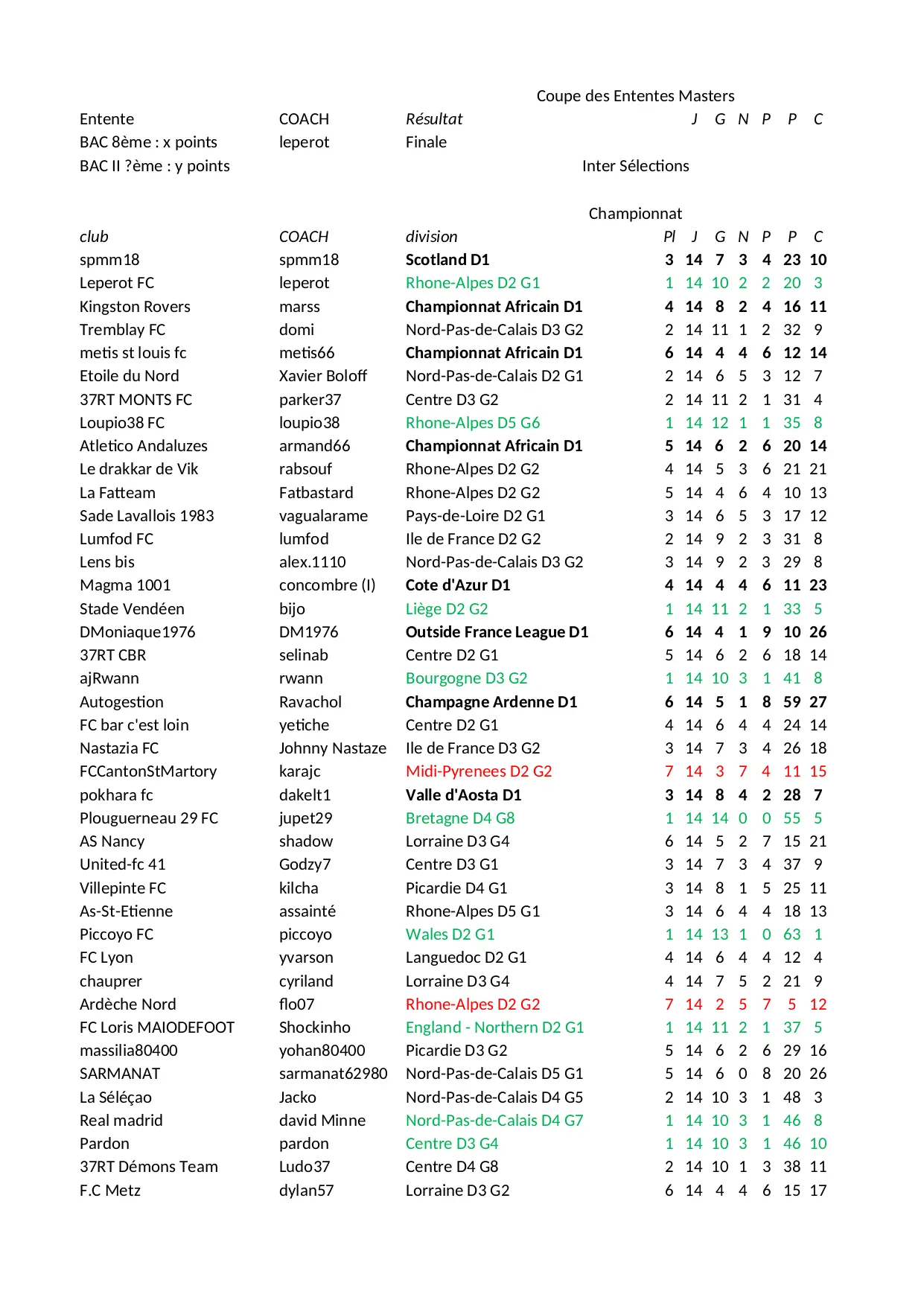 resultat alpes poule calais lorraine bretagne rhone picardie centre perfect false championnat africain france etienne