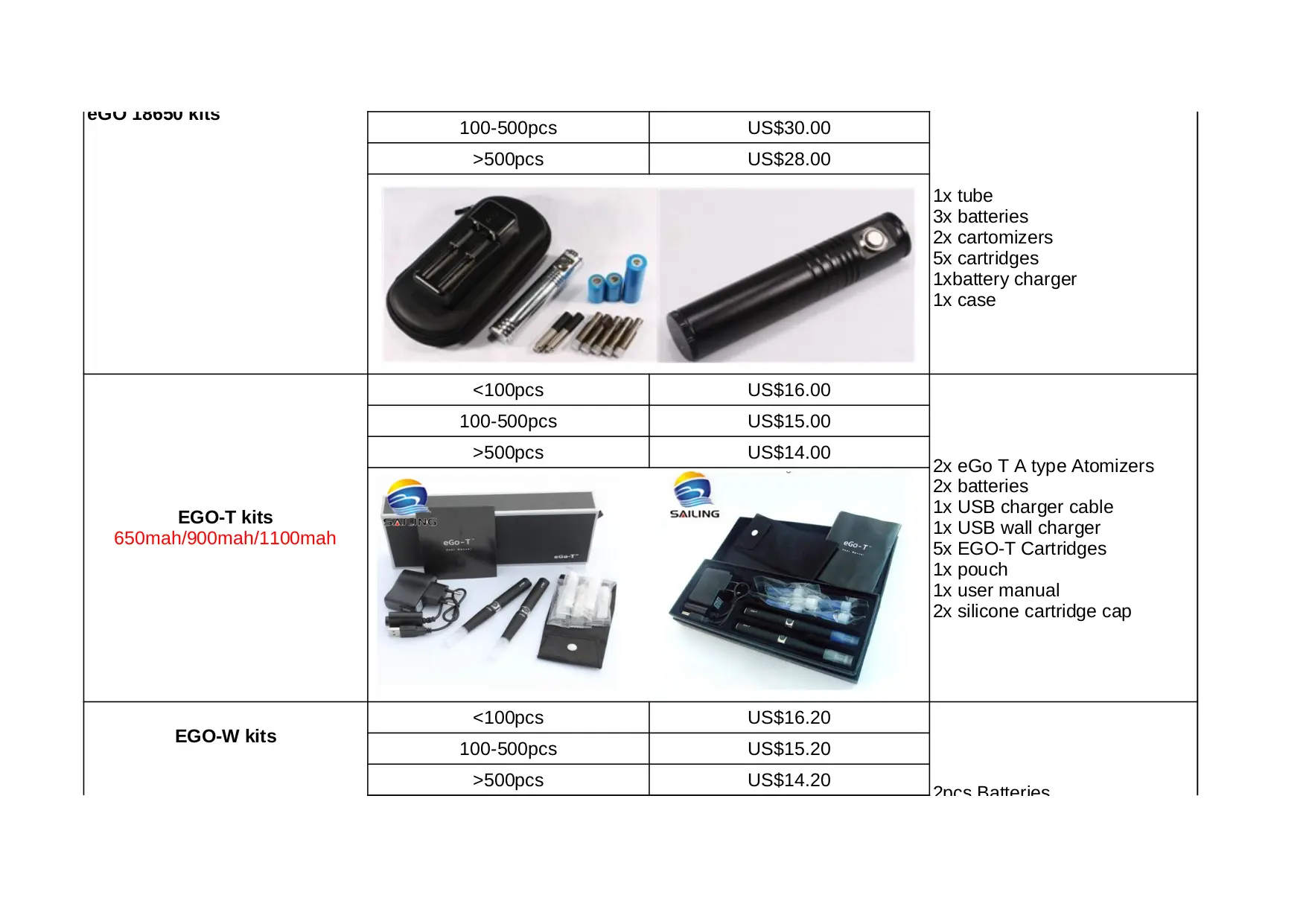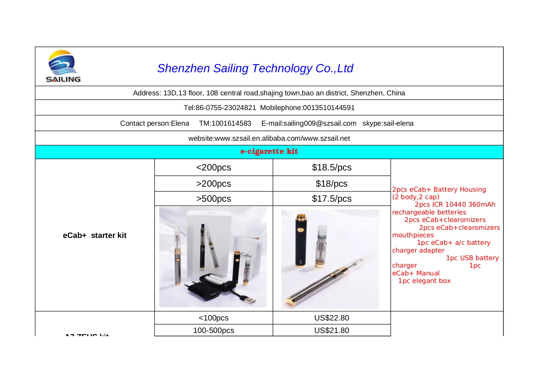 - Sailing Kits Pricelist.xls