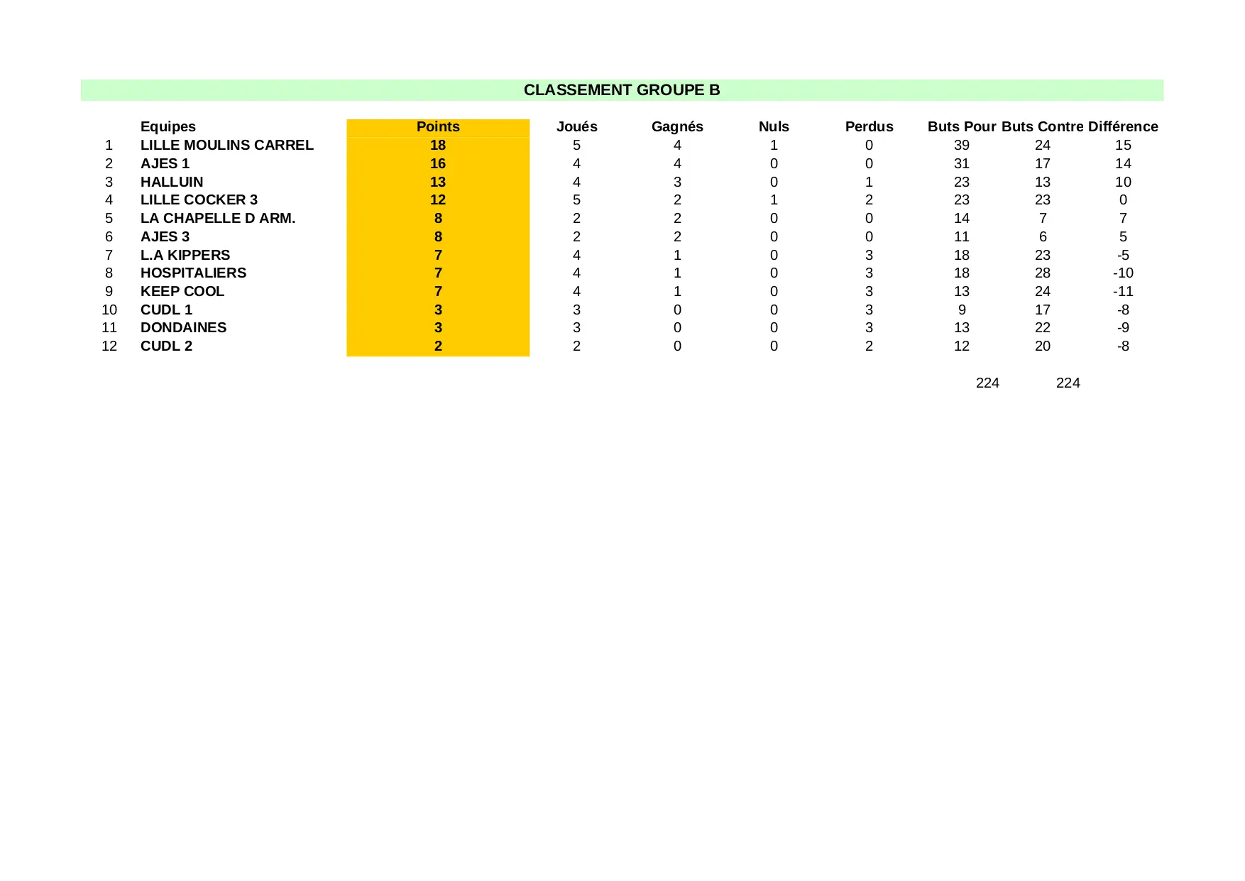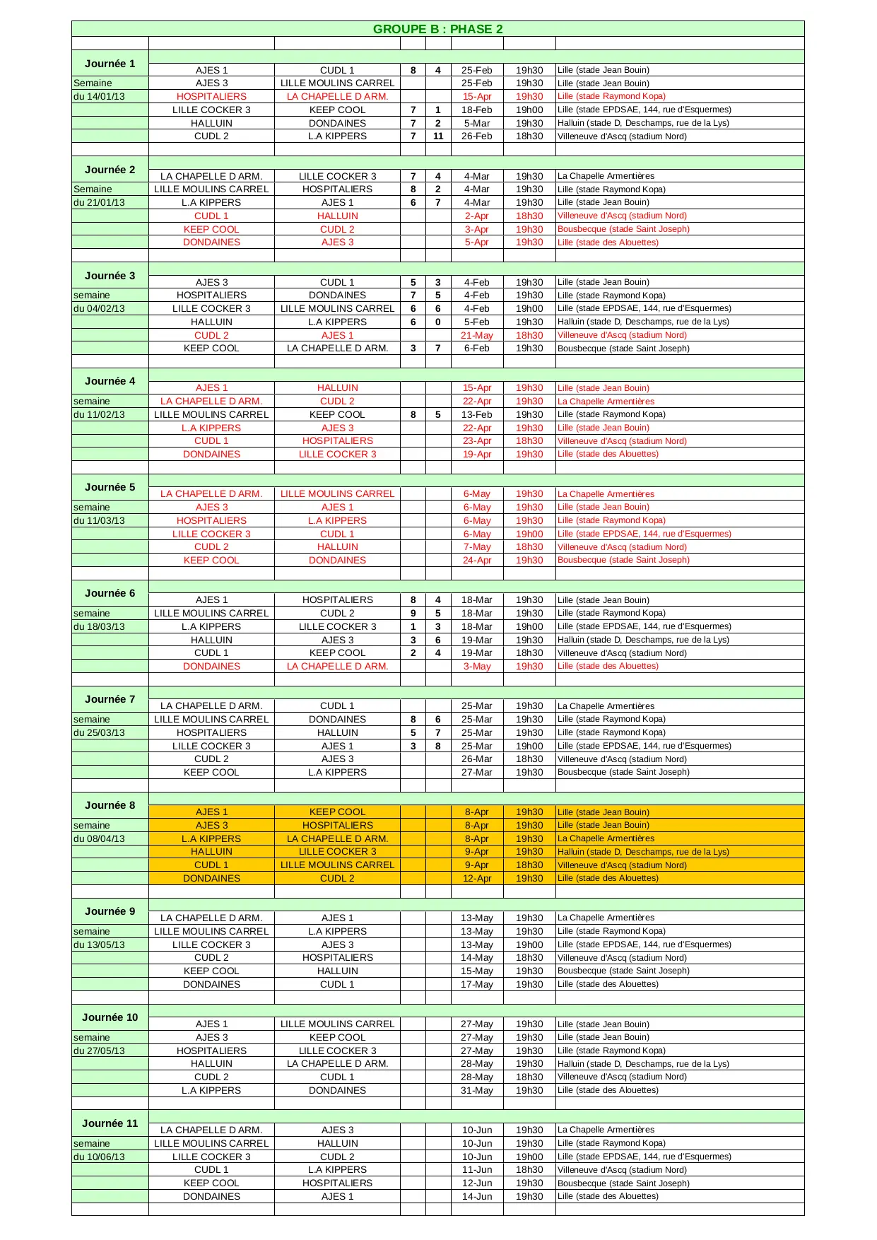 Calendrier Groupe B 2012-2013 (XLS)