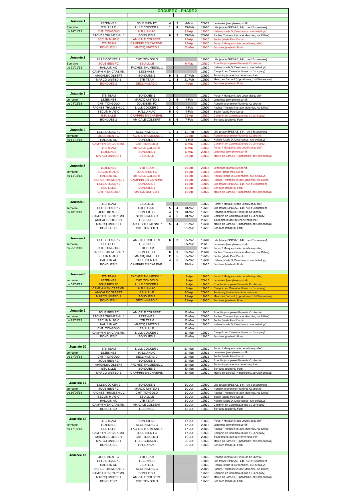 Calendrier Groupe C 2012-2013 (XLS)