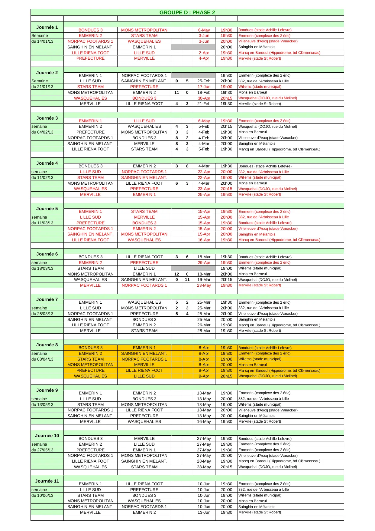 stade lille prefecture stars 20h00 19h30 wasquehal synthetique emmerin herbe riena sainghin bondues melant merville