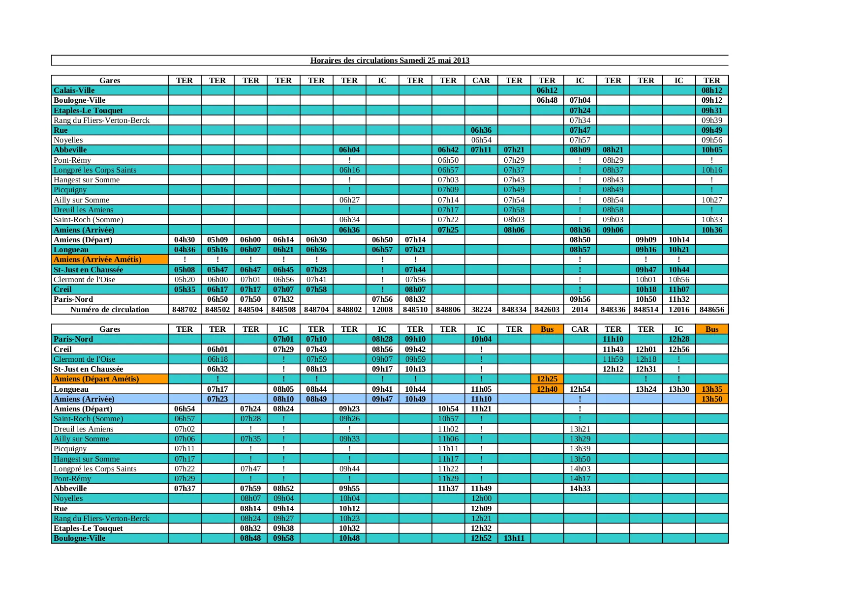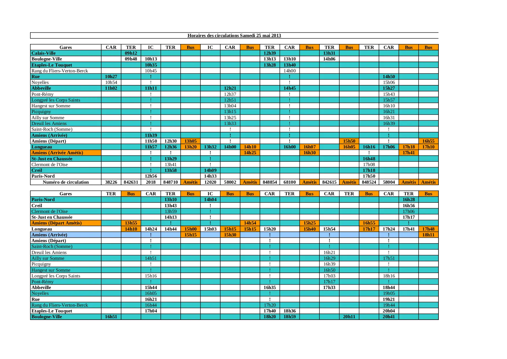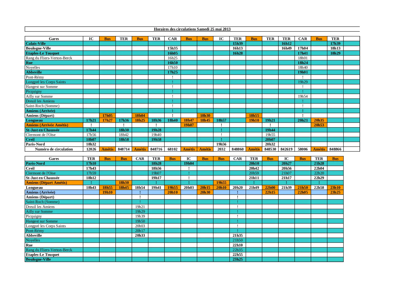 Calais Amiens Paris Samedi 25 mai (XLS)