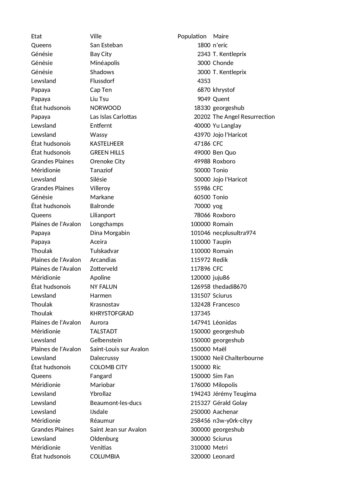 avalon tonio queens genesie gates georgeshub kentleprix grandes lewsland plaines romain hudsonois meridionie papaya thoulak