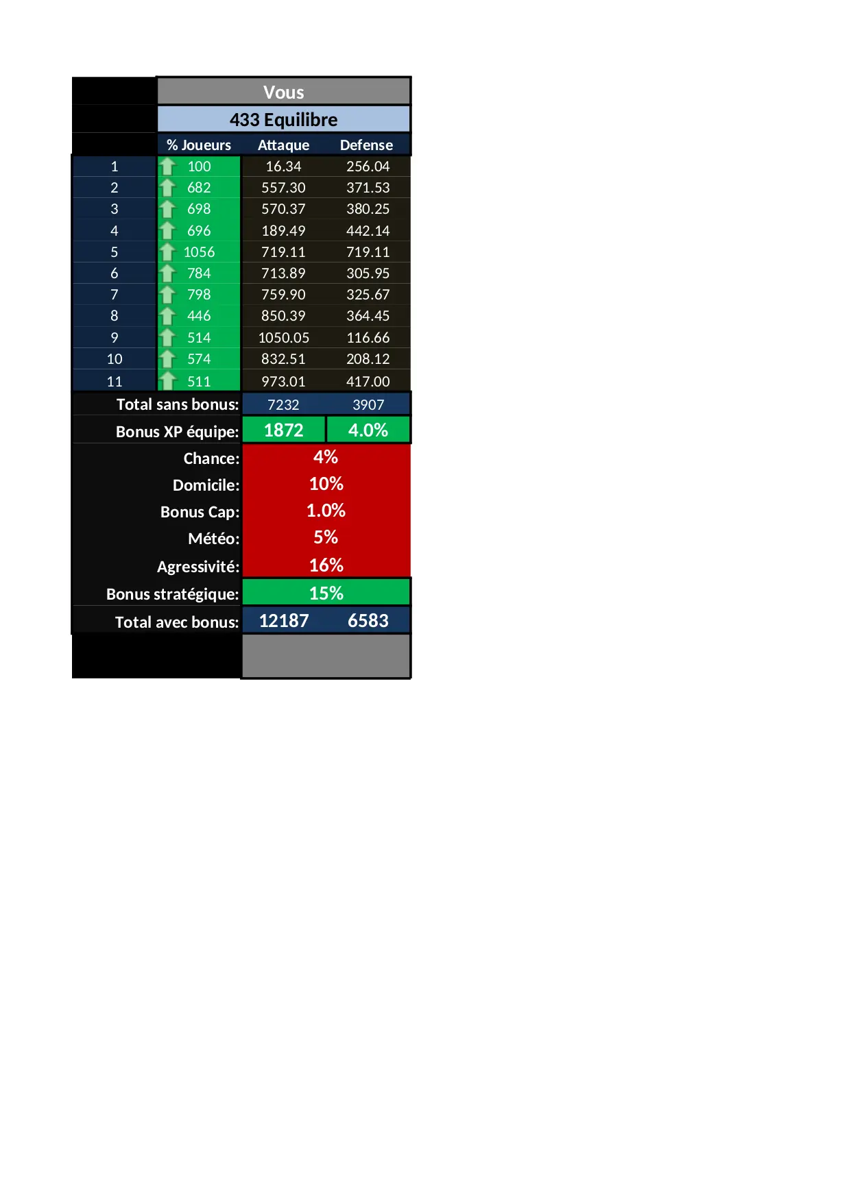 match adversaire votre entendu passe bonus attaque total chance gagner defense equilbre equilibrer equilibre contre