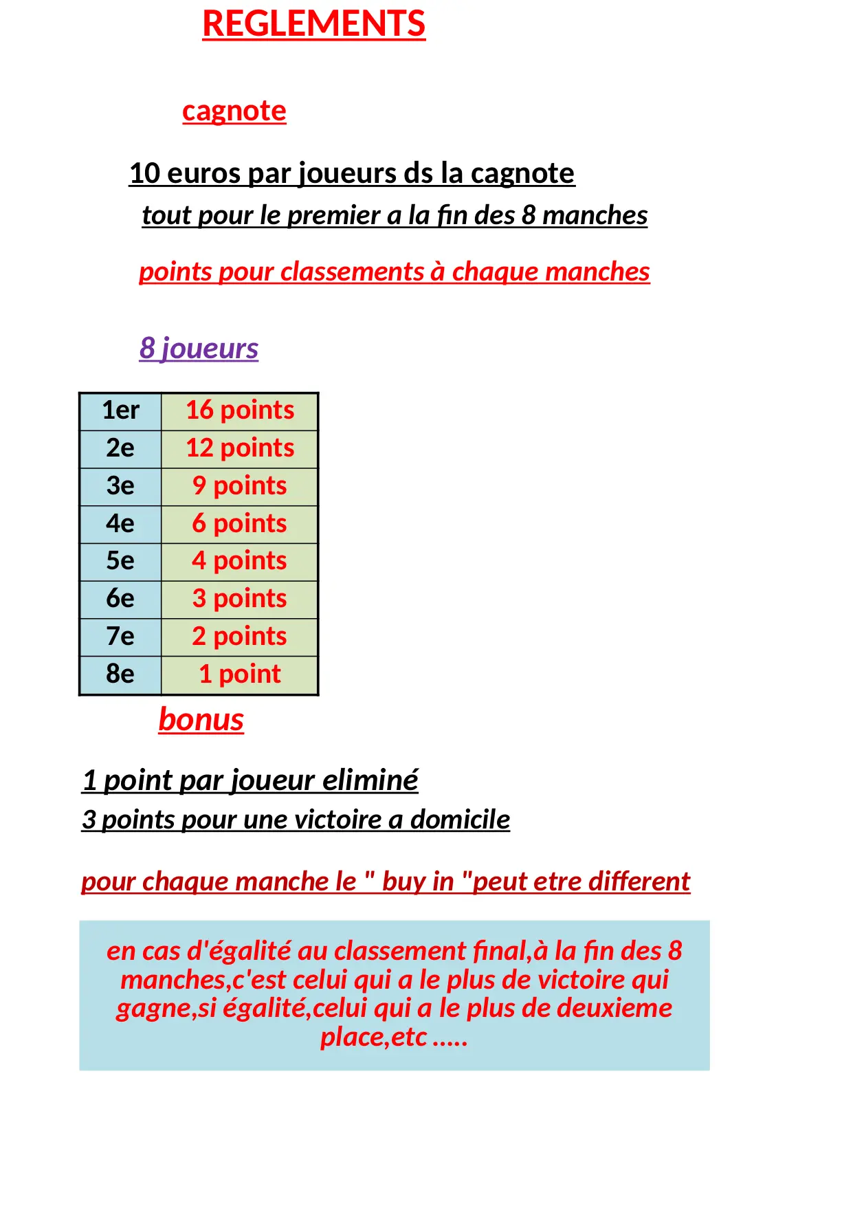 manches classement recave cagnote euros points final partager egalite bonus celui joueur sorti victoire place