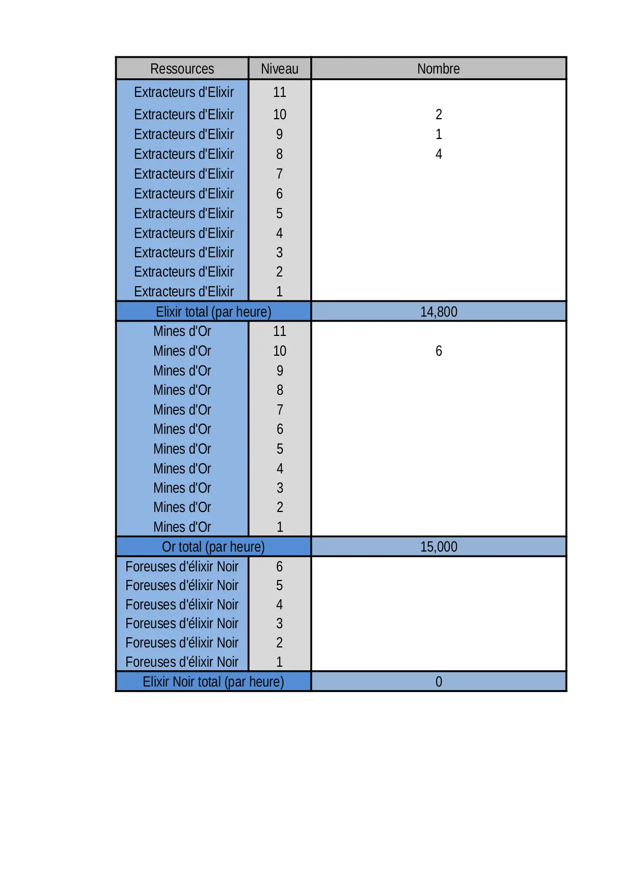 ressources heure clashofclans total calculateur clans extracteurs clash niveau elixir mines foreuses heures nombre