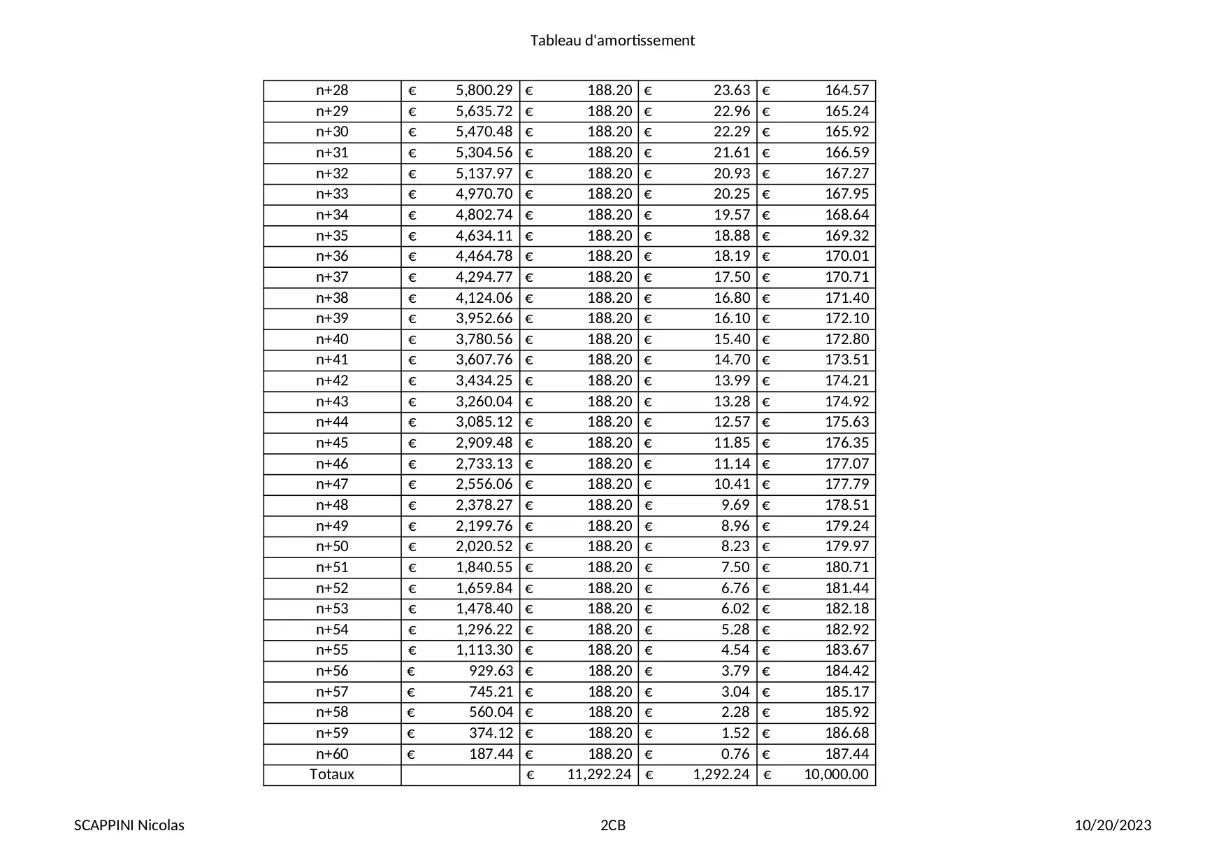 amortissement contrat annee valeur duree convertir totaux engagement interets annuite