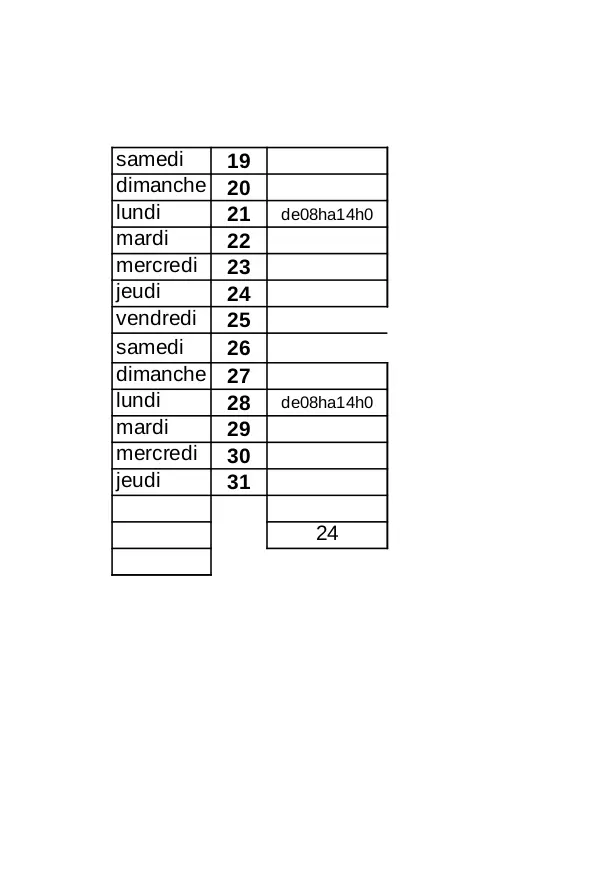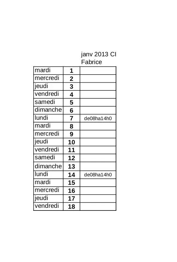 de8h0a17h0 de8h0a18h mercredi 08h00 de12h00 jeudi de18h00 samedi de8ha12h0 lundi de17h00 de08ha14h0 dimanche vendredi mardi