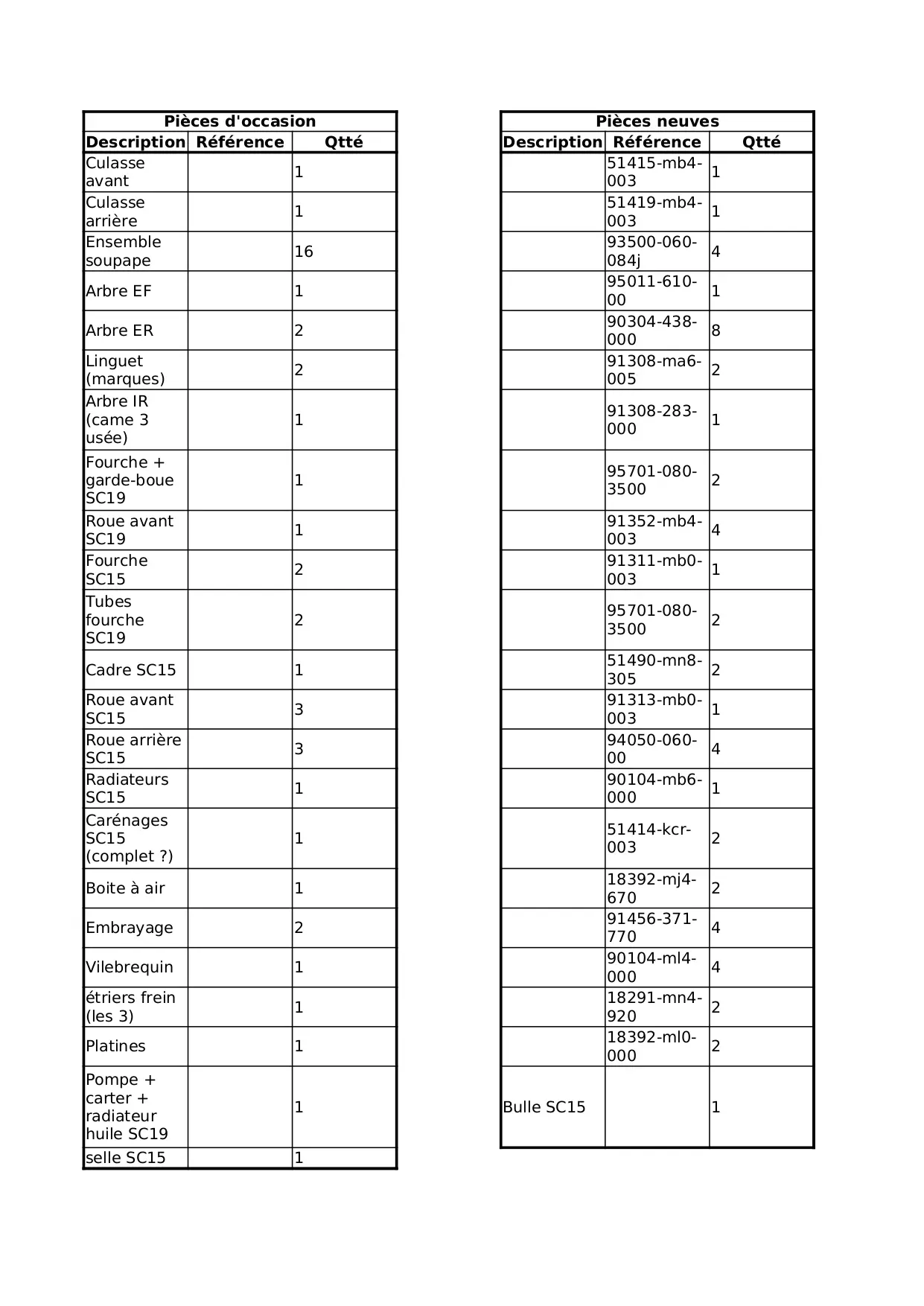 fourche boite frein reference description pompe culasse arriere pieces vilebrequin embrayage complet etriers platines arbre