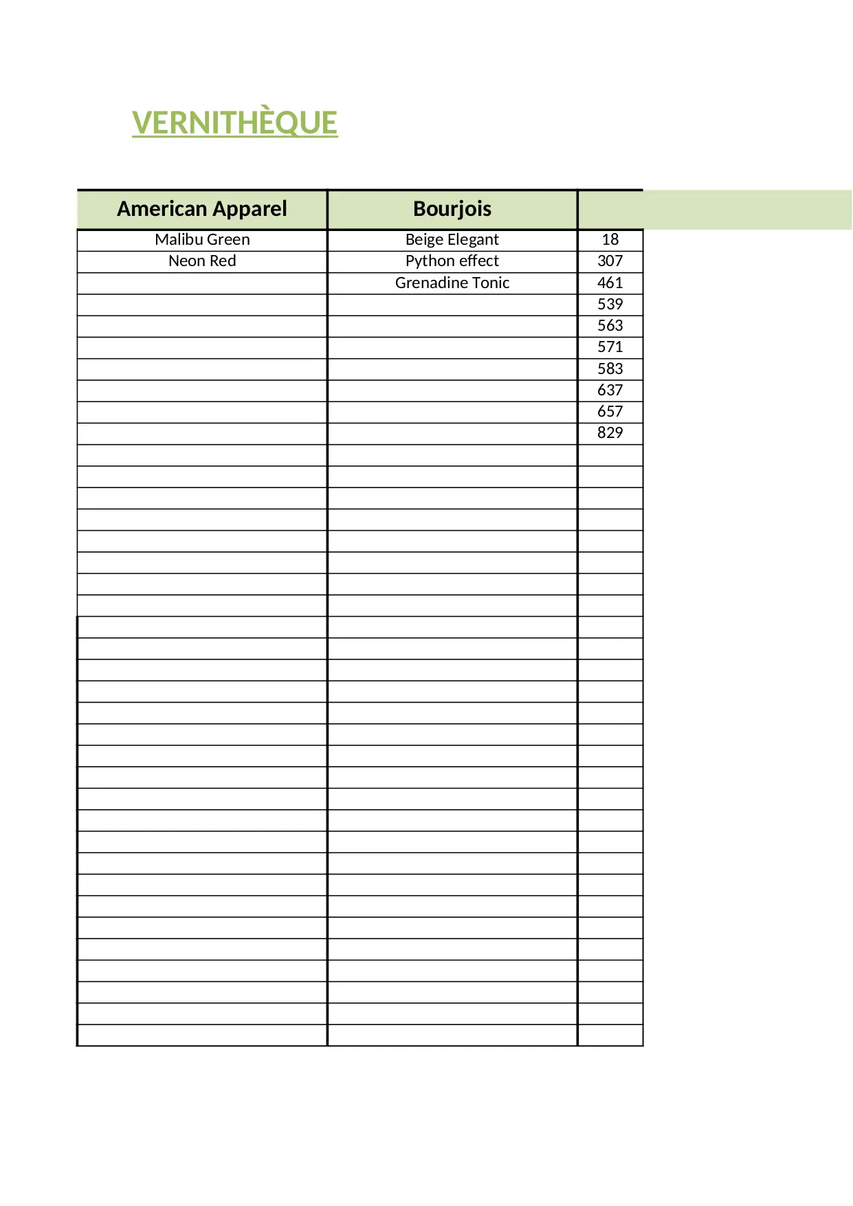 vernithèque (XLSX)
