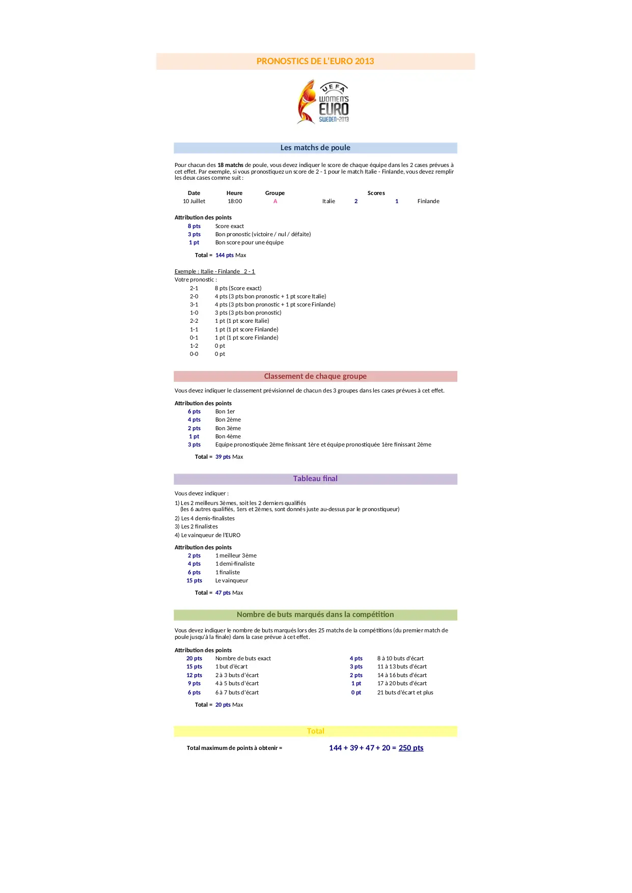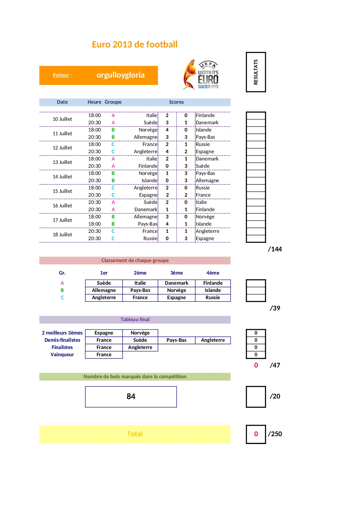 Pronostics - EURO Féminin 2013 -orgulloygloria (XLSX)