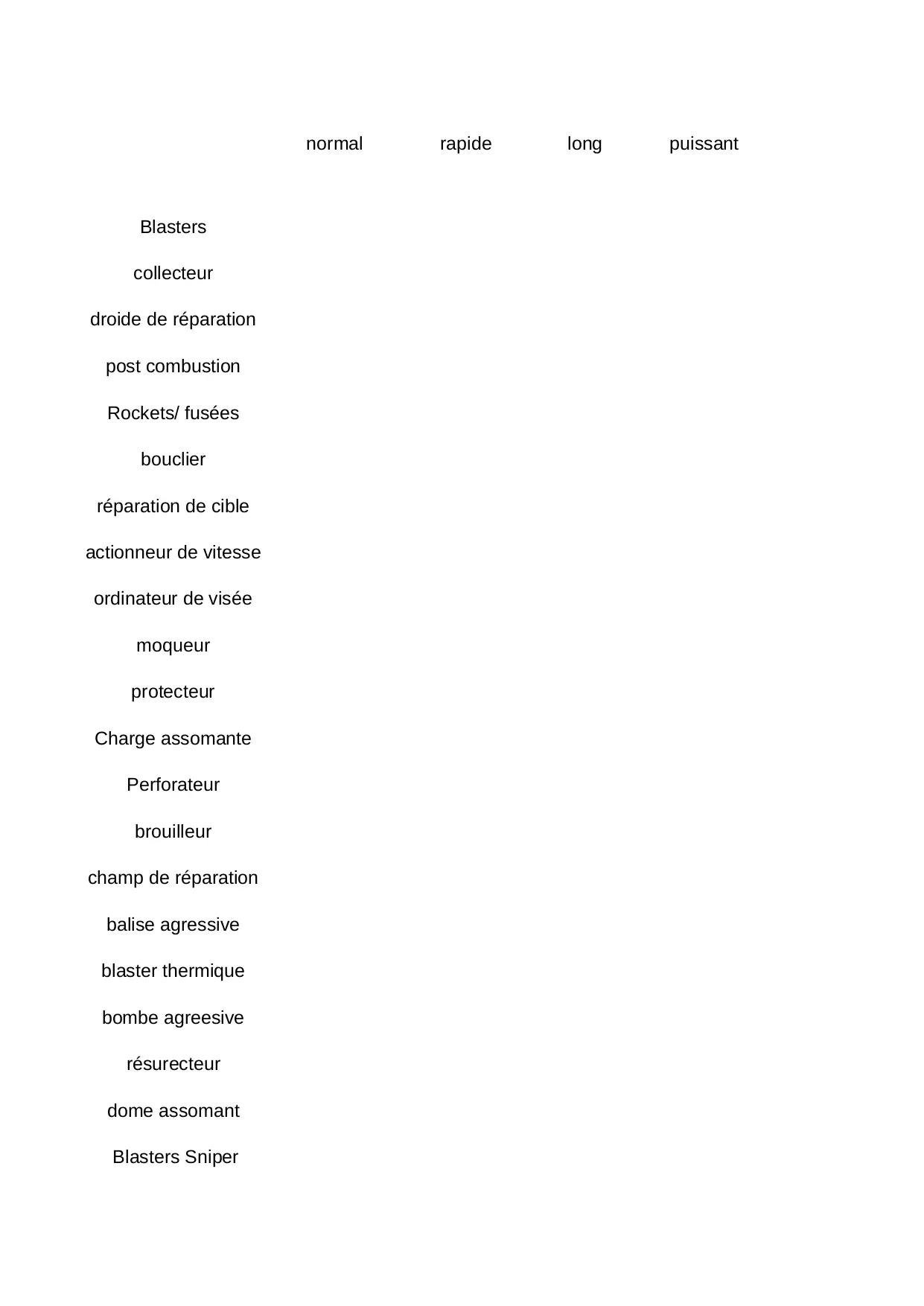 agreesive agressive blasters bombe resurecteur plans assomant normal thermique reparation attack sniper blaster balise tourelle